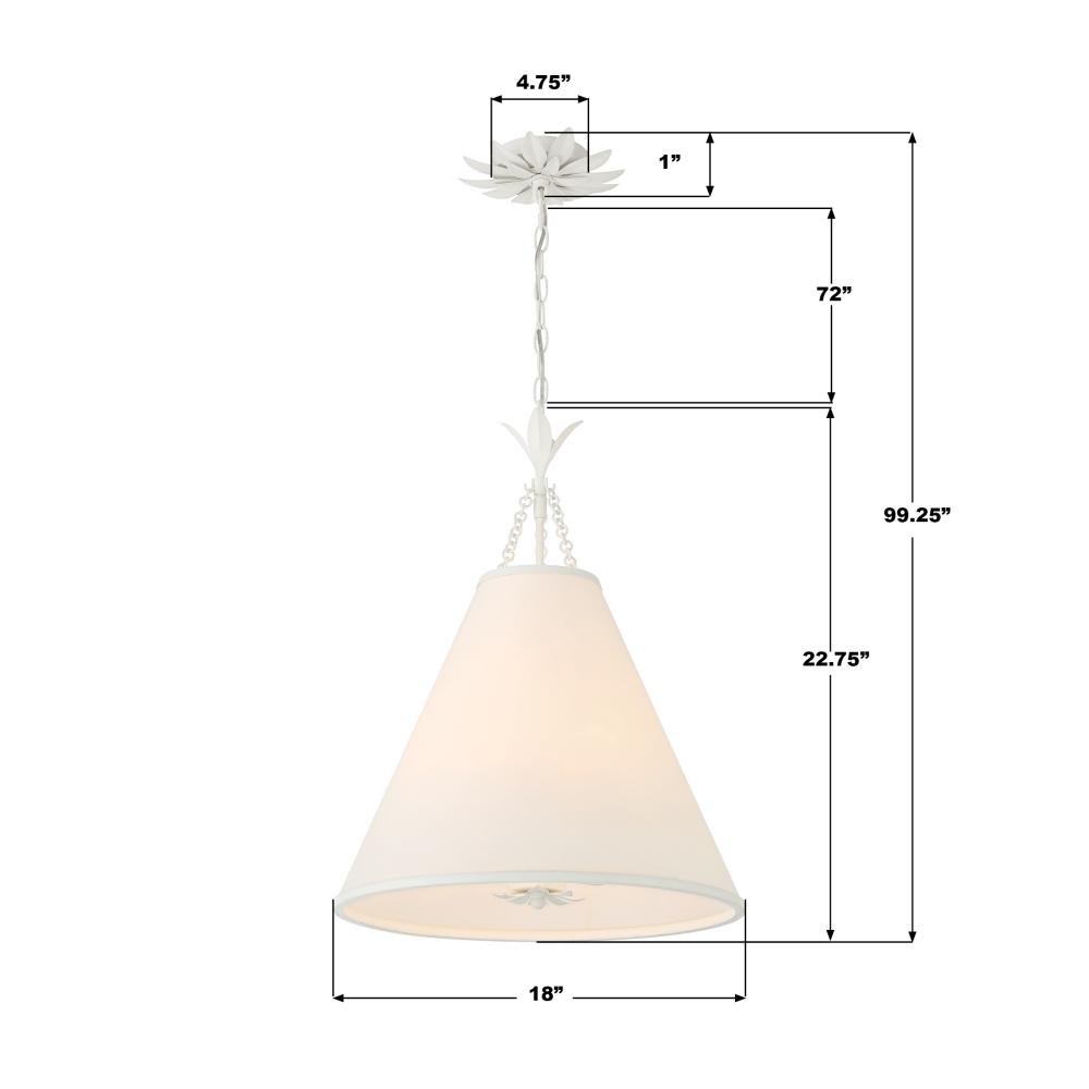 White silk cone shade dressed with delicate metal leaf accents.