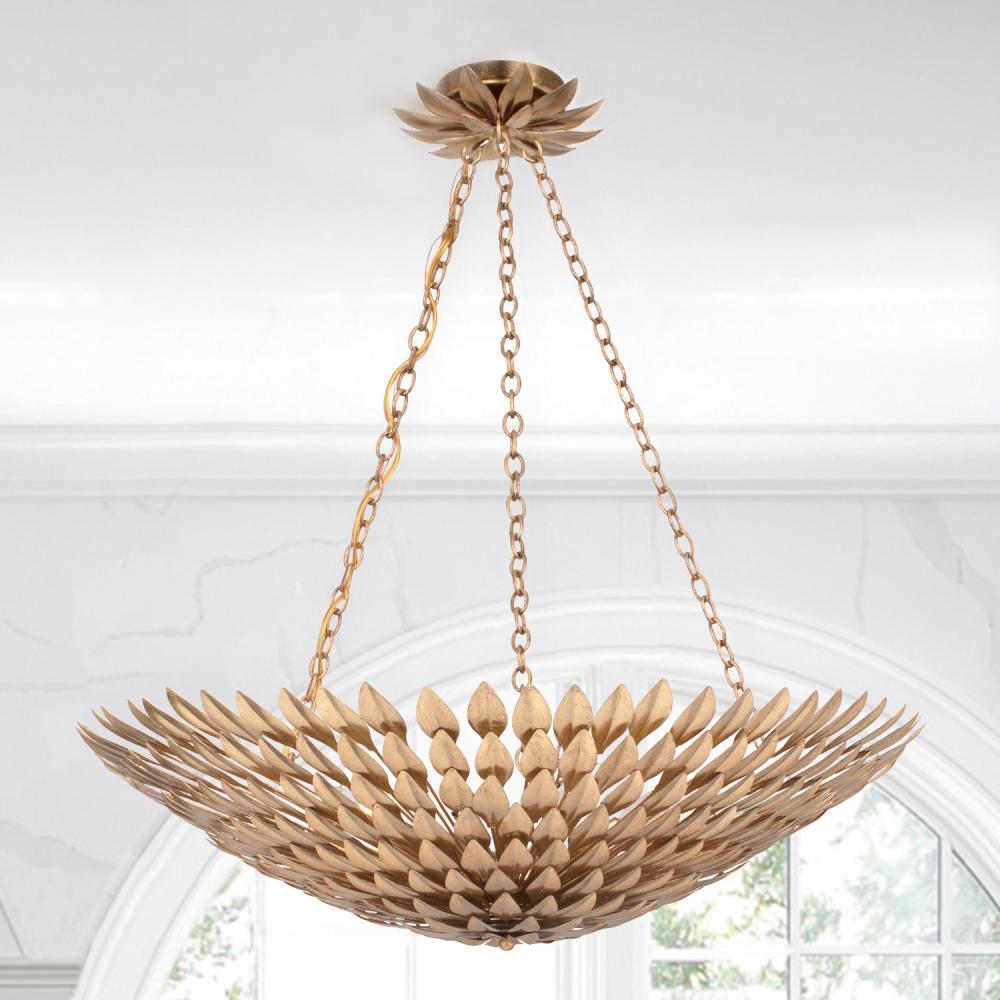 Layers of individual wrought iron leaves deliver a stunning, unique, and functional light. The tailored elegance of the shimmering metallic florals is perfect for a transitional home though versatile enough to be incorporated into any modern design. While ideal for a bedroom, living area, or kitchen, it can be used anywhere you want to add a bit of glam.