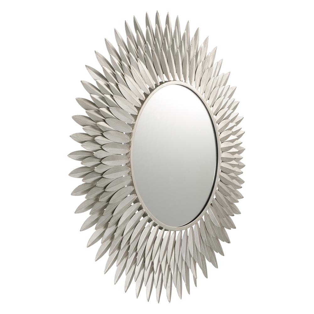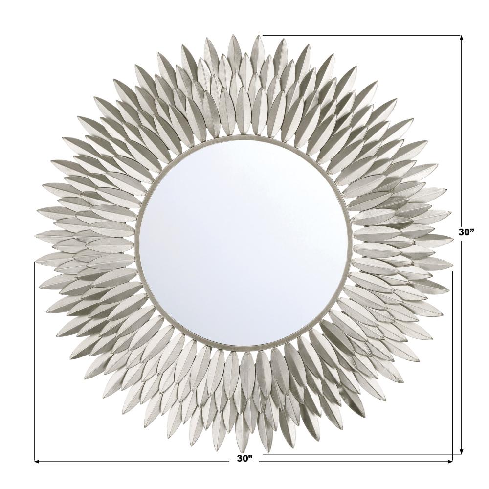 Inspired by Crystorama’s iconic Broche Collection, this stunning mirror brings sculptural artistry to wall décor. The mirror features a radiant sunburst design with hand-forged metal leaves arranged to evoke elegance and organic beauty. The intricate leaf-shaped detailing channels a refined sense of nature-inspired aesthetics, adding warmth and charm to any interior. This mirror is ideal as a focal point in entryways, living rooms, or bedrooms, and it pairs beautifully with contemporary and classic design styles.