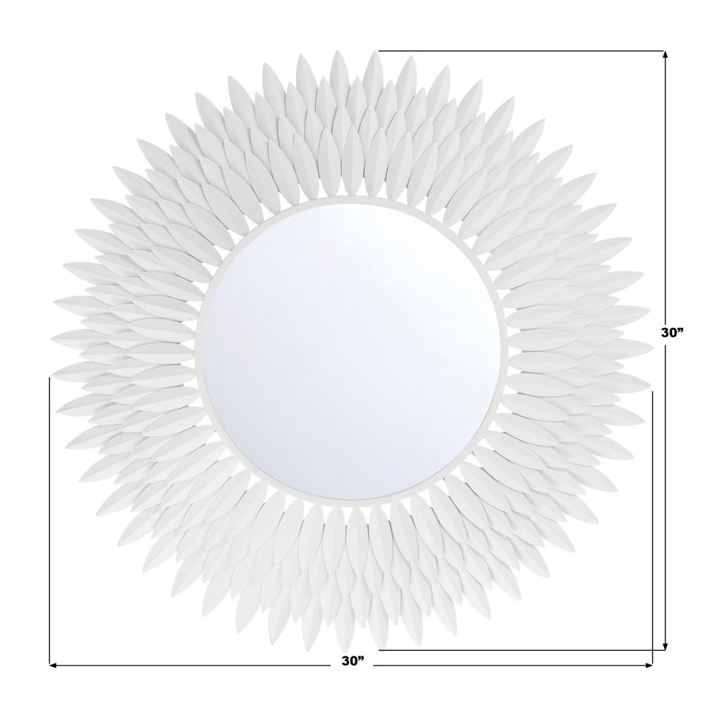 Inspired by Crystorama’s iconic Broche Collection, this stunning mirror brings sculptural artistry to wall décor. The mirror features a radiant sunburst design with hand-forged metal leaves arranged to evoke elegance and organic beauty. The intricate leaf-shaped detailing channels a refined sense of nature-inspired aesthetics, adding warmth and charm to any interior. This mirror is ideal as a focal point in entryways, living rooms, or bedrooms, and it pairs beautifully with contemporary and classic design styles.