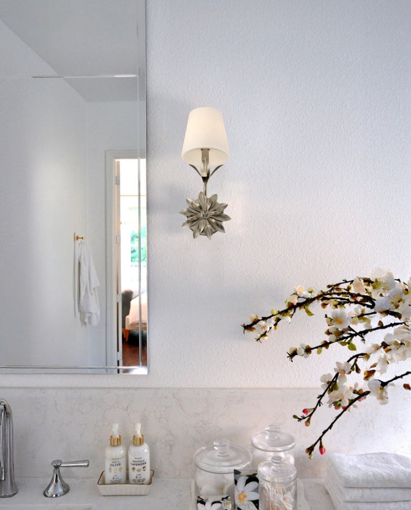 Individual wrought iron leaves deliver a stunning, unique, and functional light. The tailored elegance of the shimmering metallic florals is perfect for a transitional home though versatile enough to be incorporated into any modern design. While ideal for a bedroom, living area, or kitchen, it can be used anywhere you want to add a bit of glam.