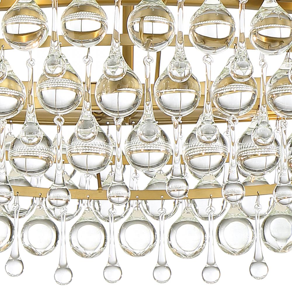 Elegance and glamour will illuminate the room with the Calypso collection. Draped in an abundance of smoothed shaped clear drops and balls, this contemporary collection is a perfect statement to a living room, dining room, bathroom, or entry.