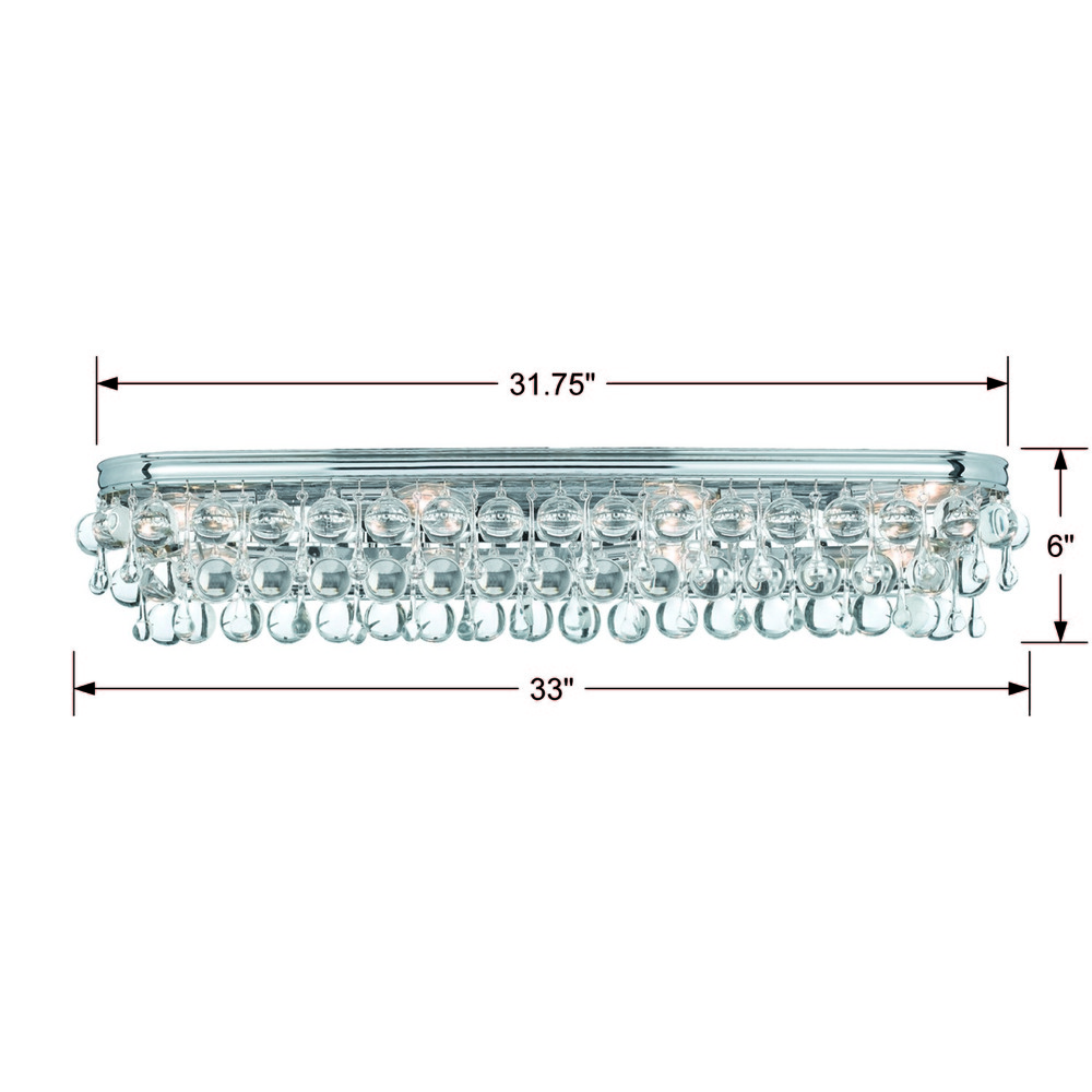 Elegance and glamour will illuminate the room with the Calypso collection. Draped in an abundance of smoothed shaped clear drops and balls, this contemporary collection is a perfect statement to a living room, dining room, bathroom, or entry.
