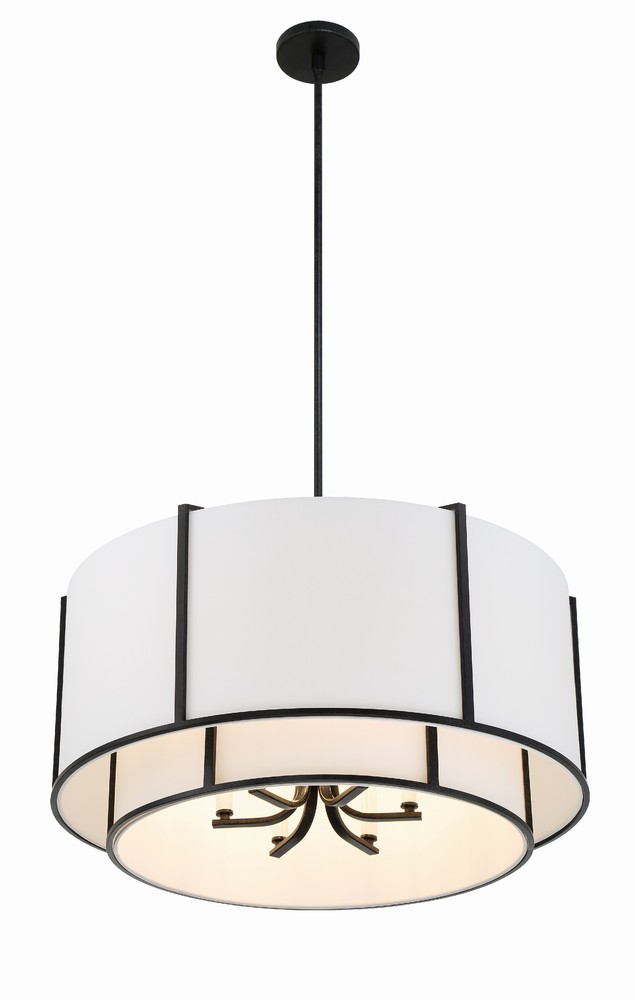 Showcasing a silhouette of a classic drum pendant, the Carlyn contrast of hard metal with smooth silk makes for an elegant look. Mixing materials with contrasting finishes deliver striking simplicity and adds a beautiful dimension to the Carlyn collection. Available in large, medium, and small pendant sizes, this collection is perfect for adding a welcoming tone to a room.