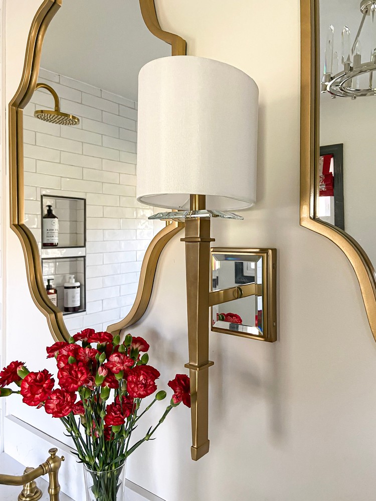 Transitional wall sconce with crystal bobeche and a mirrored backplate for a wow factor.