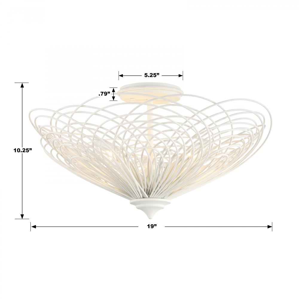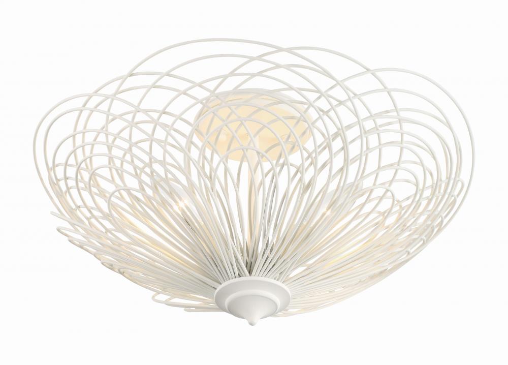 Delicate flower petals inspire the Doral collection. Its swirling metal rings create a beautiful piece of art and enhance a room design with its attractive symmetrical shape. When gazing up, this fixture will remind you of a blooming flower. It’s warm finish and organic shape are versatile for all modern settings.