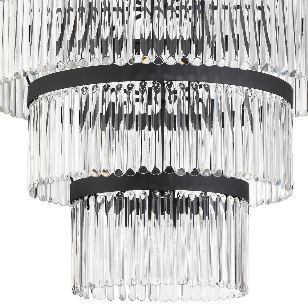 Art deco design is exemplified in the Emory collection. The collection features a row of smooth glass prisms hanging from a steel frame. Both the Black Forged and Modern Gold finishes, add all the sparkle and glamour you need in a fixture.