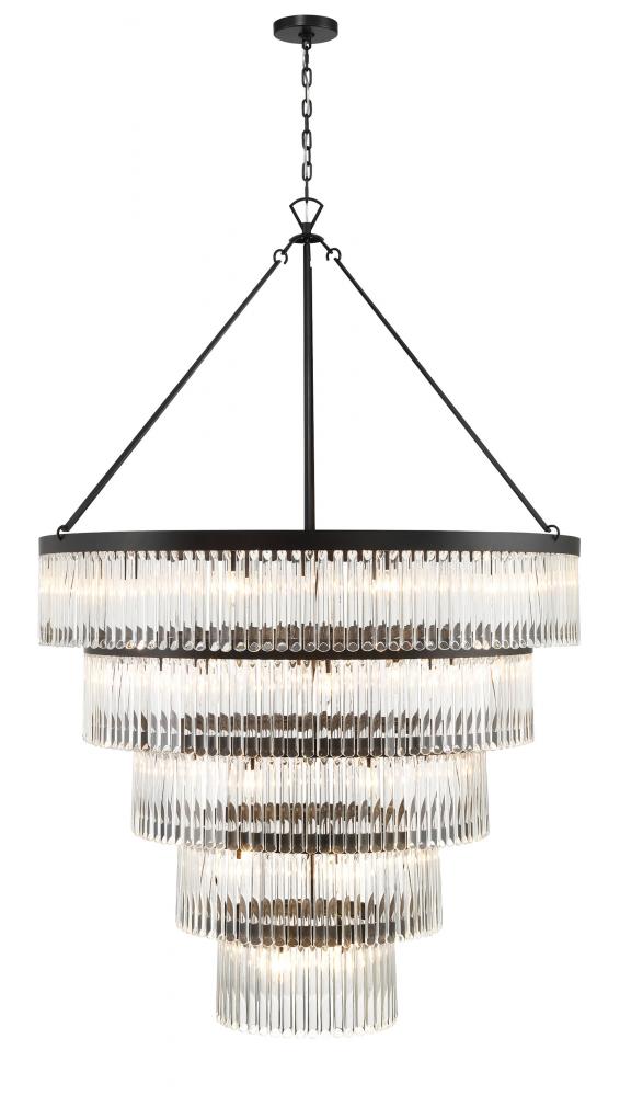 Art deco design is exemplified in the Emory collection. The collection features a row of smooth glass prisms hanging from a steel frame. Both the Black Forged and Modern Gold finishes, add all the sparkle and glamour you need in a fixture.
