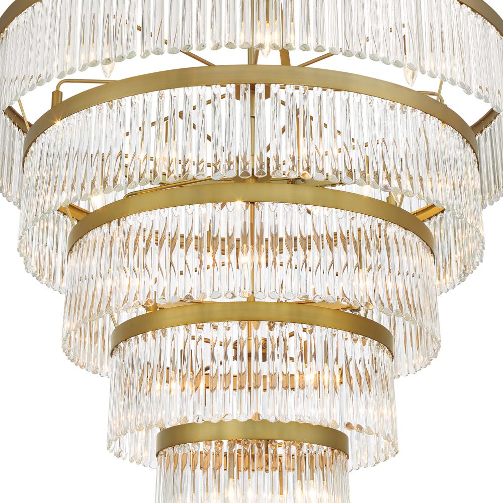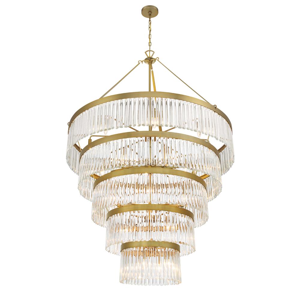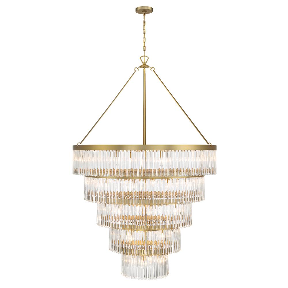 Art deco design is exemplified in the Emory collection. The collection features a row of smooth glass prisms hanging from a steel frame. Both the Black Forged and Modern Gold finishes, add all the sparkle and glamour you need in a fixture.
