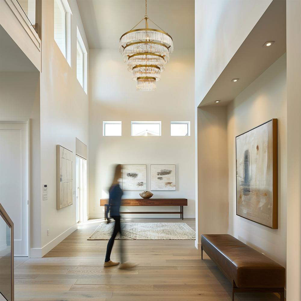 The elongated glass prisms provide a modern look.