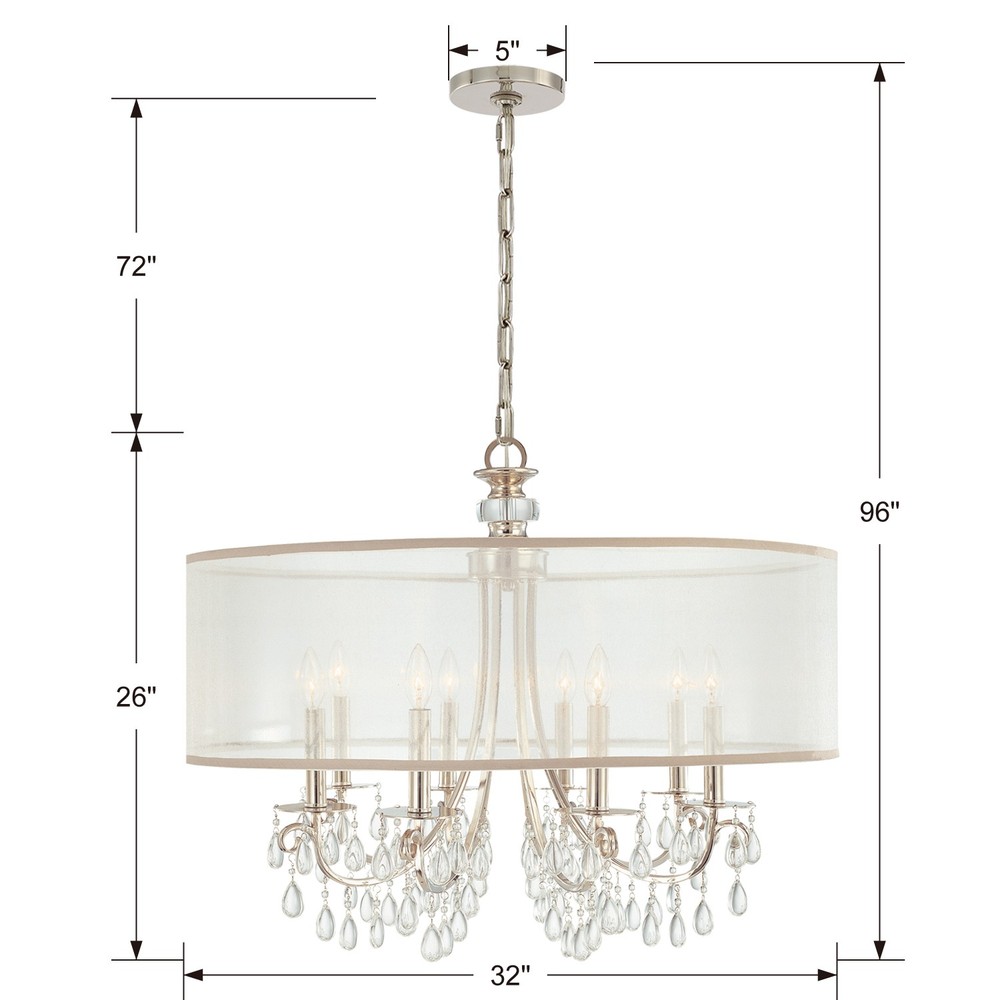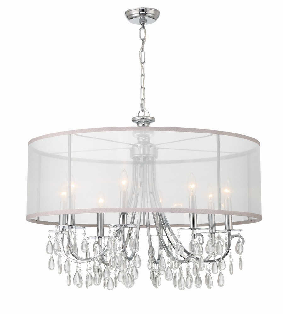 You can't go wrong with a classic like the Hampton, a elegant transitional light that looks good in any room of the house. Stylish, modern and minimal, the fixture features a shimmering drum shade on a stately frame draped with smooth teardrop almond crystals. Whether in a formal or relaxed setting this fixture is sure to be the focal point of any room in the house.