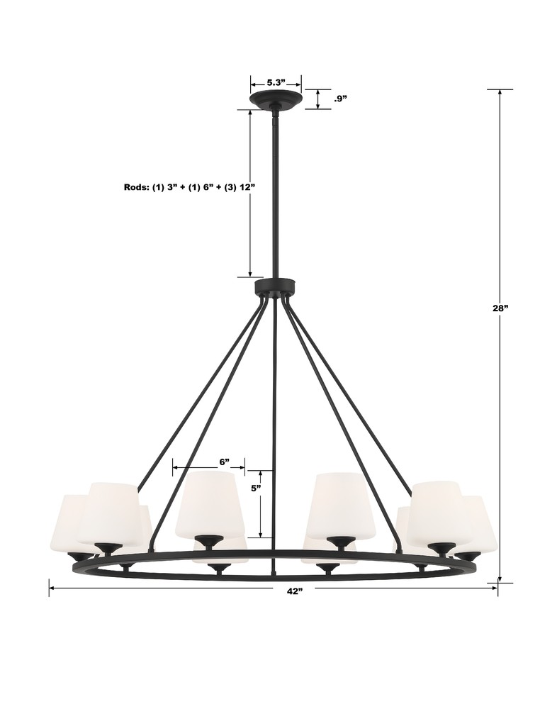 Less is more with the sleek minimalist Keenan collection. The fixture combines thin, angular arms with white glass shades for a modern touch, easily incorporated into various rooms and design styles. A cone-shaped white glass shade tops the bulb exuding a soft, ambient glow that is perfect for kitchens, dining rooms, or living room.