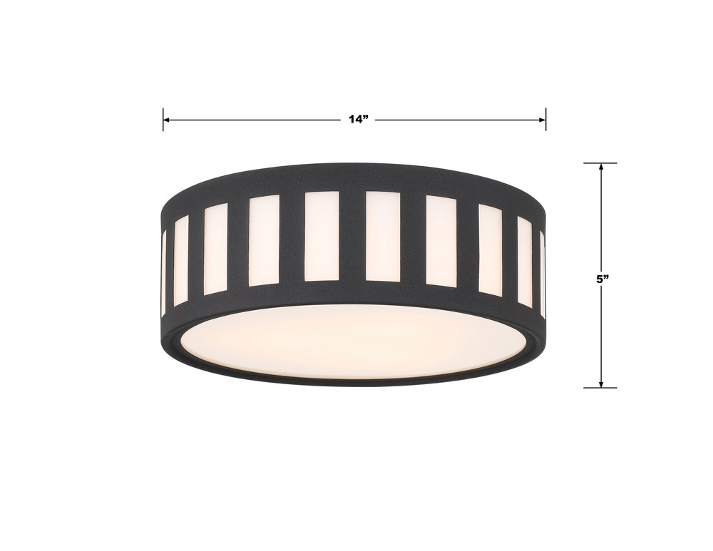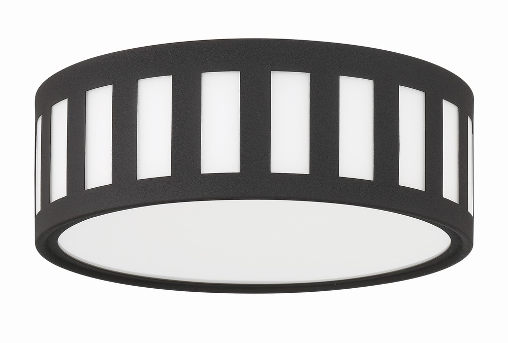 The contemporary Kendal collection makes a statement with its graphic uniform pattern. Its metal frame surrounds white glass in this elegant drum-shaped ceiling mount. The high contrast of Vibrant Gold, Black Forged, or Polished Nickel against white glass is a great way to add a touch of drama to a room.