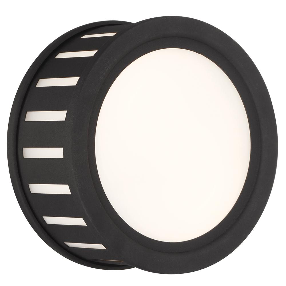 The contemporary Kendal collection makes a statement with its graphic uniform pattern. Its metal frame surrounds white glass in this elegant drum-shaped ceiling mount. The high contrast of Vibrant Gold, Black Forged, or Polished Nickel against white glass is a great way to add a touch of drama to a room.