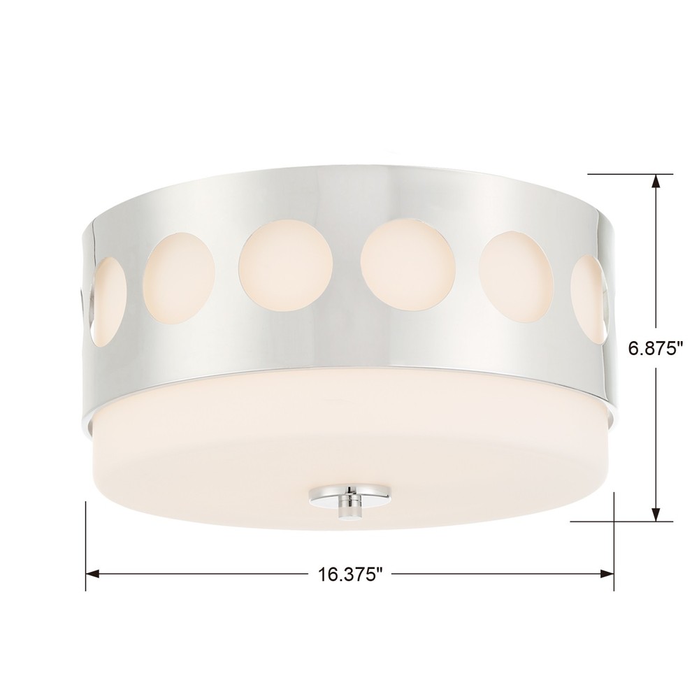 The drum-shaped Kirby ceiling mount sends focused light to a space. A perfect choice for low ceilings, the solid white glass, and circular geometric metal overlay pattern is a stylish choice for various spaces.