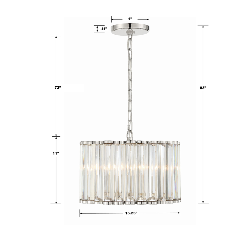 The Elliot collection features clear glass rods that are thick and smooth, creating brilliant light refraction.