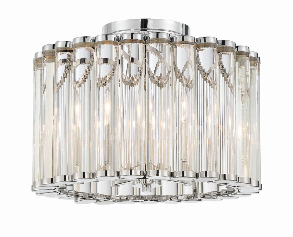 The Elliot collection features clear glass rods that are thick and smooth, creating brilliant light refraction.