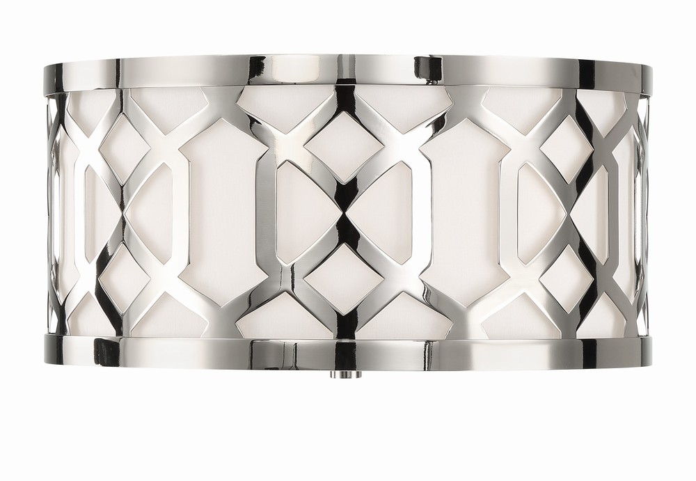 A striking geometric statement, the Jennings collection pairs Libby Langdon's signature classic design with a modern flair. The Jennings is an open, graphic metal design with a white silk shade. A perfect marriage of classic and modern creating the ideal elegance.