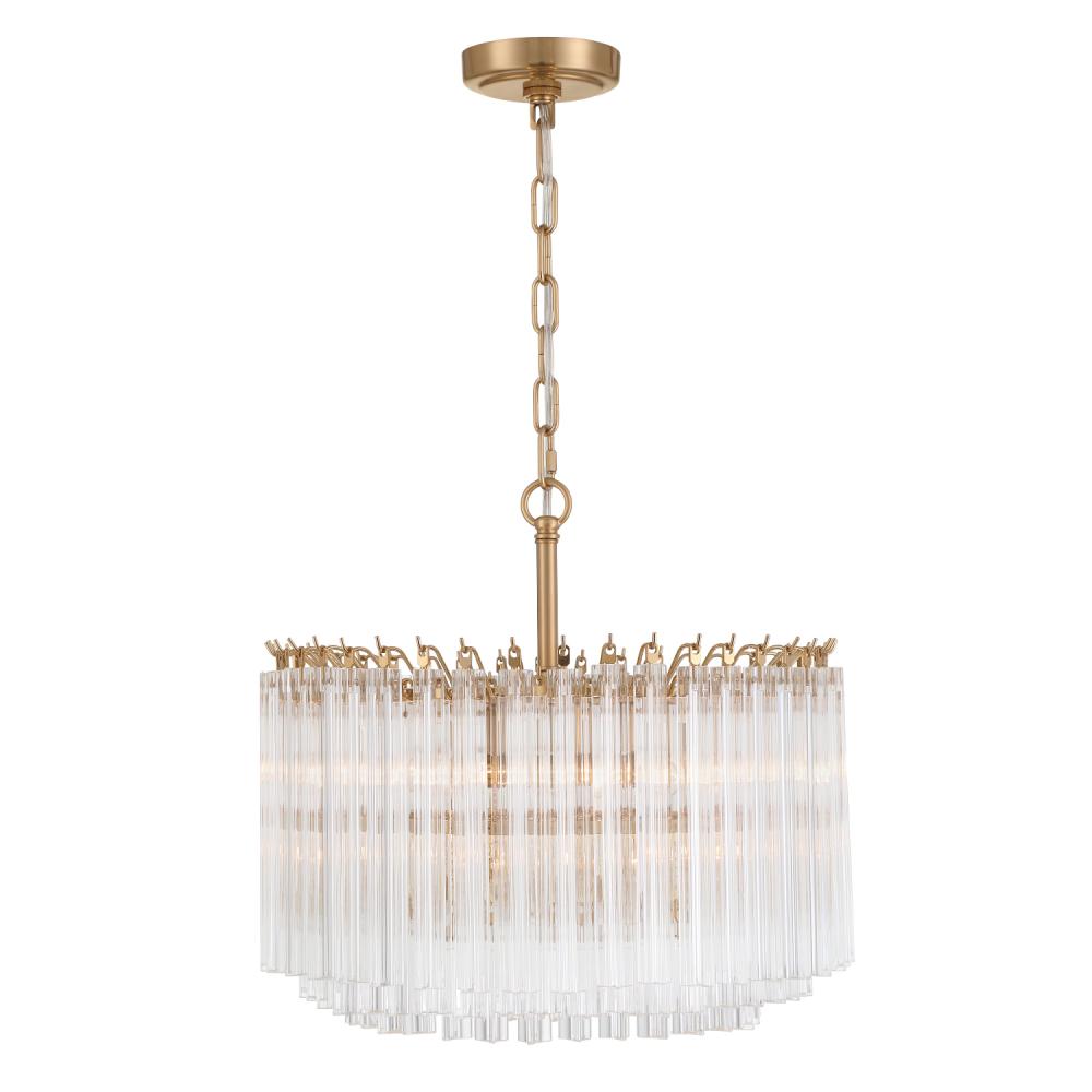 The Lofton Collection showcases mid-century sophistication with its stepped, tiered design and distinctive Triedri glass rods. Created using a technique that involves making triangular cuts on the glass, the Triedri method results in a faceted, crystal-like appearance that enhances sparkle and depth. The glass gracefully cascades downward and inward, framed in polished nickel or aged brass. This dynamic design ensures that the Lofton Collection remains a luxurious and visually striking centerpiece, with its facets reflecting light in captivating ways from any angle.