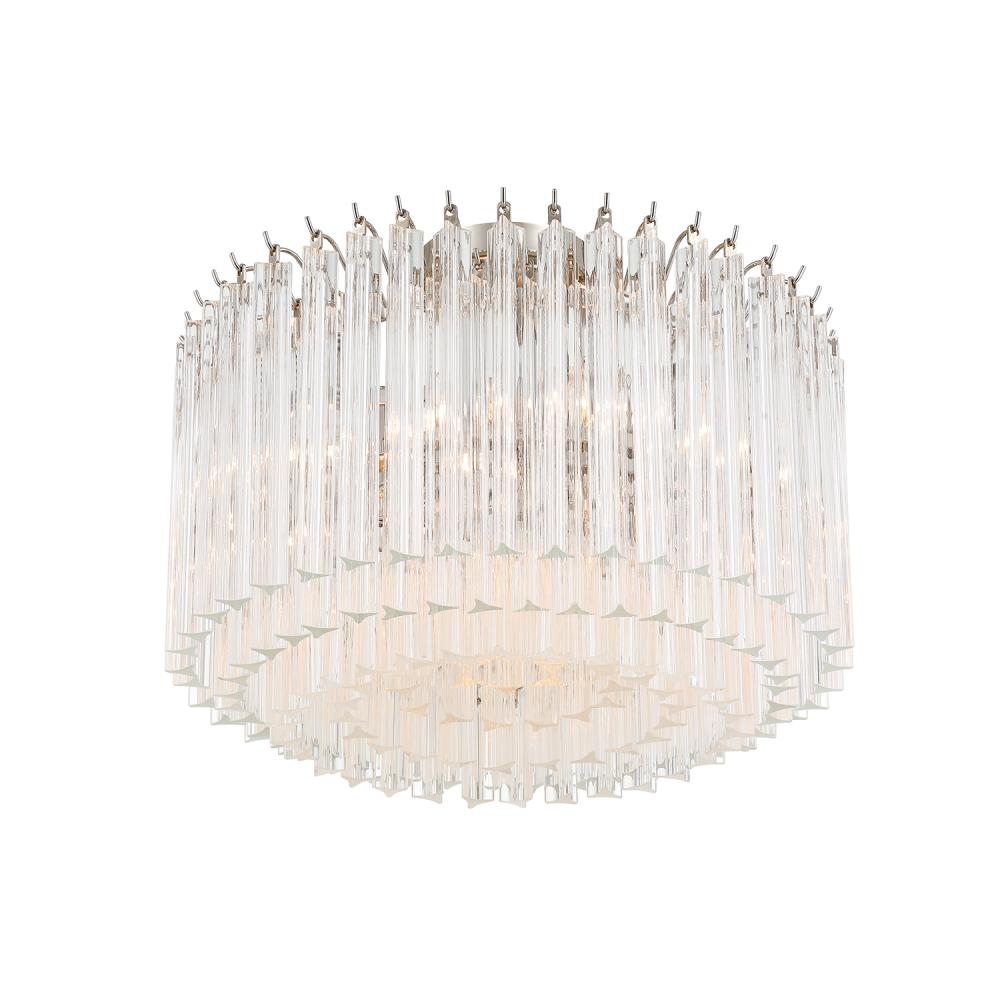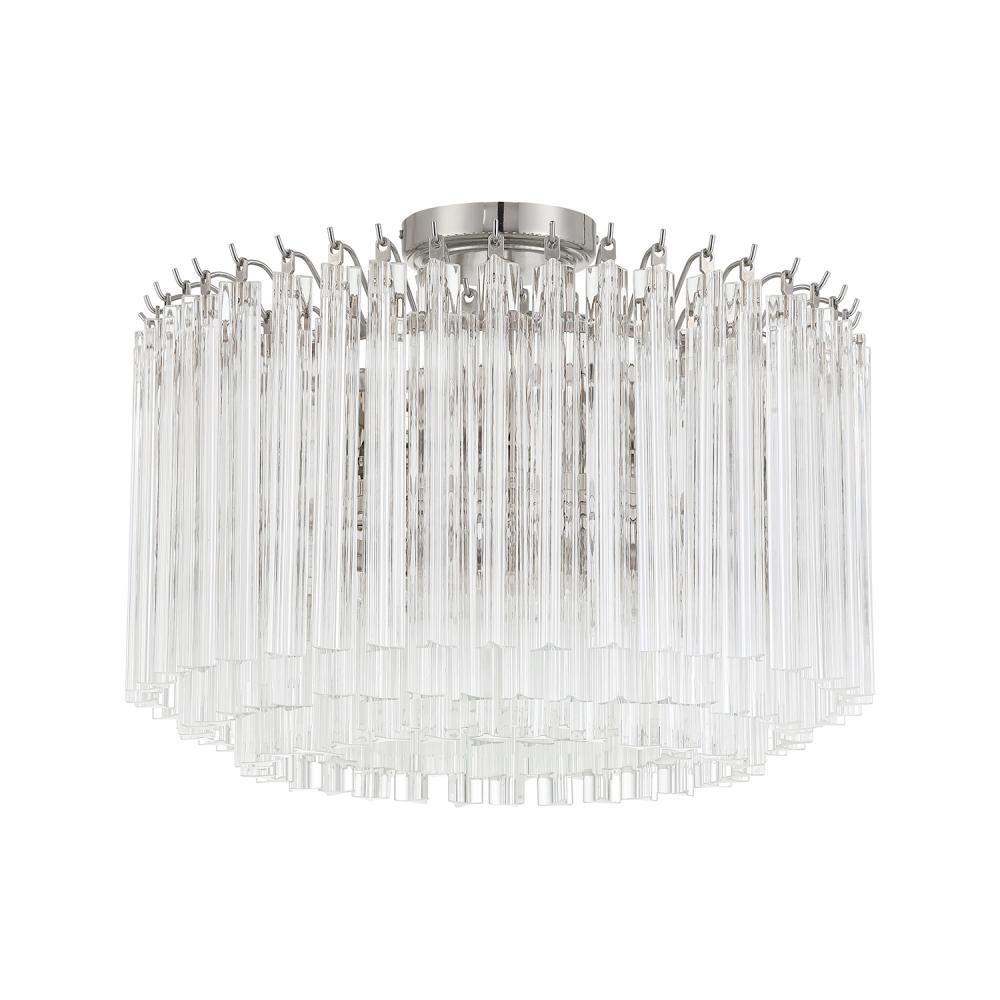 The Lofton Collection showcases mid-century sophistication with its stepped, tiered design and distinctive Triedri glass rods. Created using a technique that involves making triangular cuts on the glass, the Triedri method results in a faceted, crystal-like appearance that enhances sparkle and depth. The glass gracefully cascades downward and inward, framed in polished nickel or aged brass. This dynamic design ensures that the Lofton Collection remains a luxurious and visually striking centerpiece, with its facets reflecting light in captivating ways from any angle.