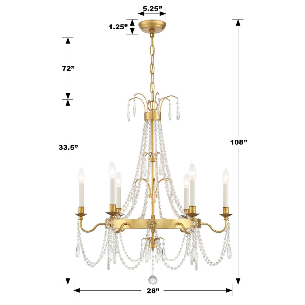 6 light 60- watt, E12 Candelabra base