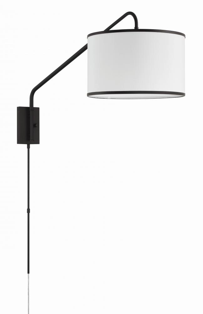 The Mallory swing arm wall sconce is a perfect lighting solution for your bedside to free up table space on your nightstand. Its unique adjustable arm moves left and right and extends inward and outward, giving you the flexibility to direct light exactly where you need it. The rectangular backplate is equipped with a convenient switch, providing easy operation. This sconce is versatile whether you hardwire it for a seamless look or the plug-in option for added convenience. The white shade is beautifully accented with a sleek metal trim and is available in black and gold.