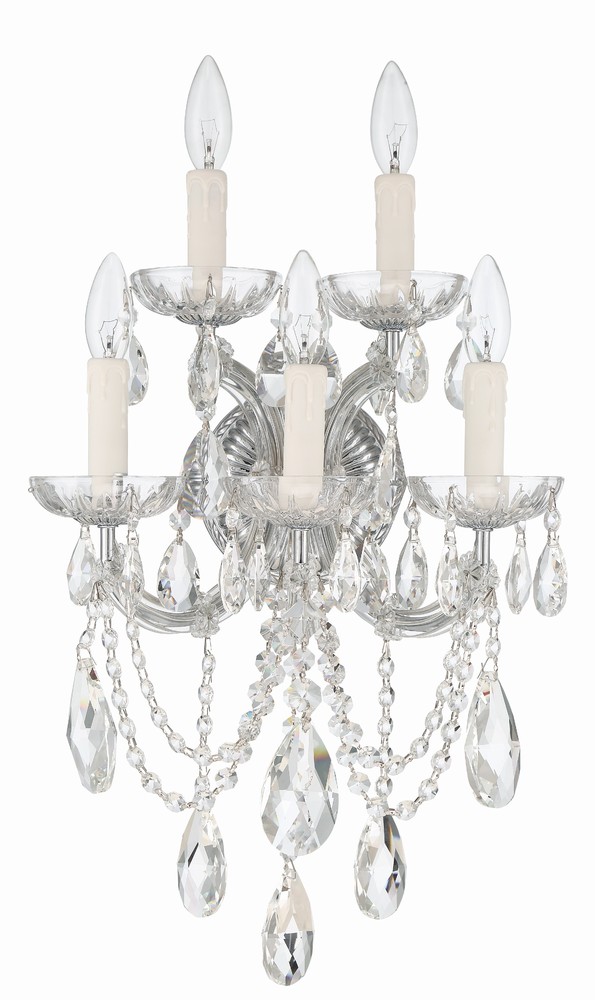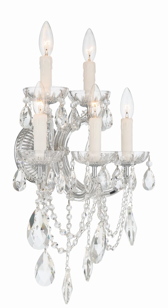 Draped in an abundance of crystal, the Maria Theresa collection is the epitome of high style. The fixture is stunning with glass arm frame decked with strands of faceted cut crystal. The fixture showcases opulence and decadence and is the perfect traditional accent to any space. Whether in a living room, or even closet or hallway, this fixture bring a luxurious addition to any decor.