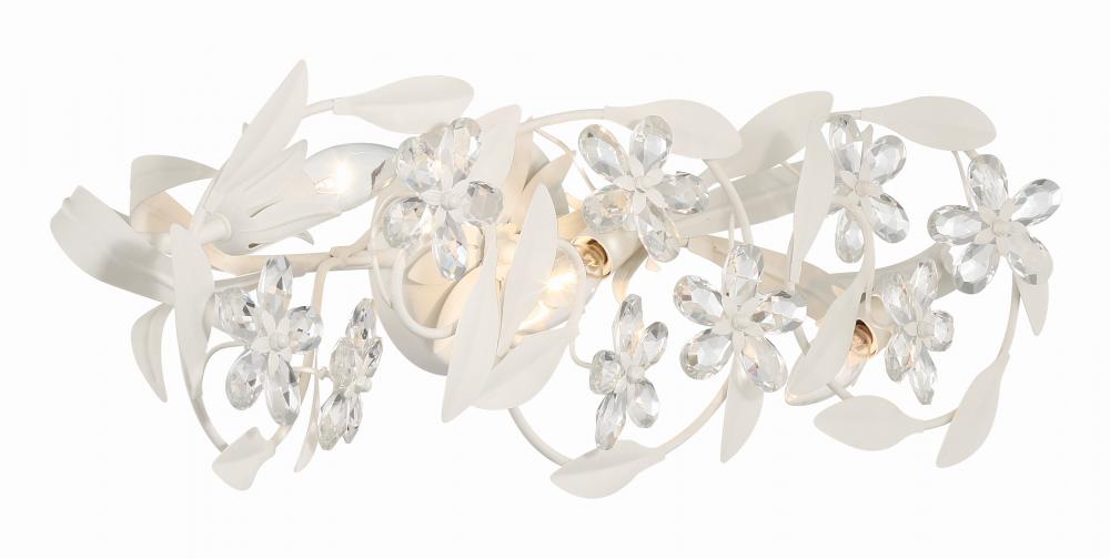 The Marselle Collection is adorned with hand-cut crystal jewels and wrought iron leaves designed in a playful arrangement. The detail of leaves and intricate floral designs lend a sense of organic artistry to each piece, creating a mesmerizing display of nature's splendor. Available in three sophisticated finishes—white, gold and silver, this collection offers a touch of opulence for every decor. The crystal jewels are cleverly connected to form delicate flowers, adding a touch of whimsy and charm to your space. Even the canopy features a leafy design, completing the harmonious blend of nature and art.