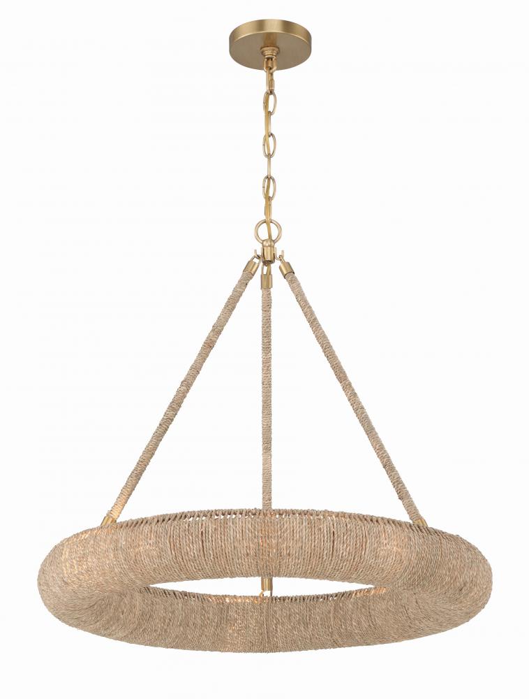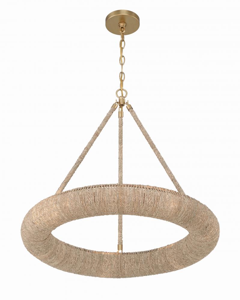 Elevate your space with the Oakley ring chandelier, an artisan masterpiece that blends natural charm with exquisite craftsmanship. With its open-top design, this chandelier infuses a room with a soothing and relaxed ambiance, directing light upward while casting a soft, filtered glow downward. Crafted from natural Lake Grass in a warm, neutral tone, this fixture showcases intricate hand-wrapped details that add depth and character, reflecting the essence of skilled artisans. With dual mounting options, it effortlessly adapts to any space.