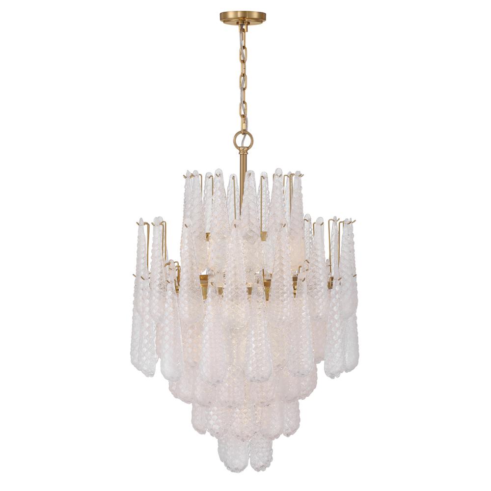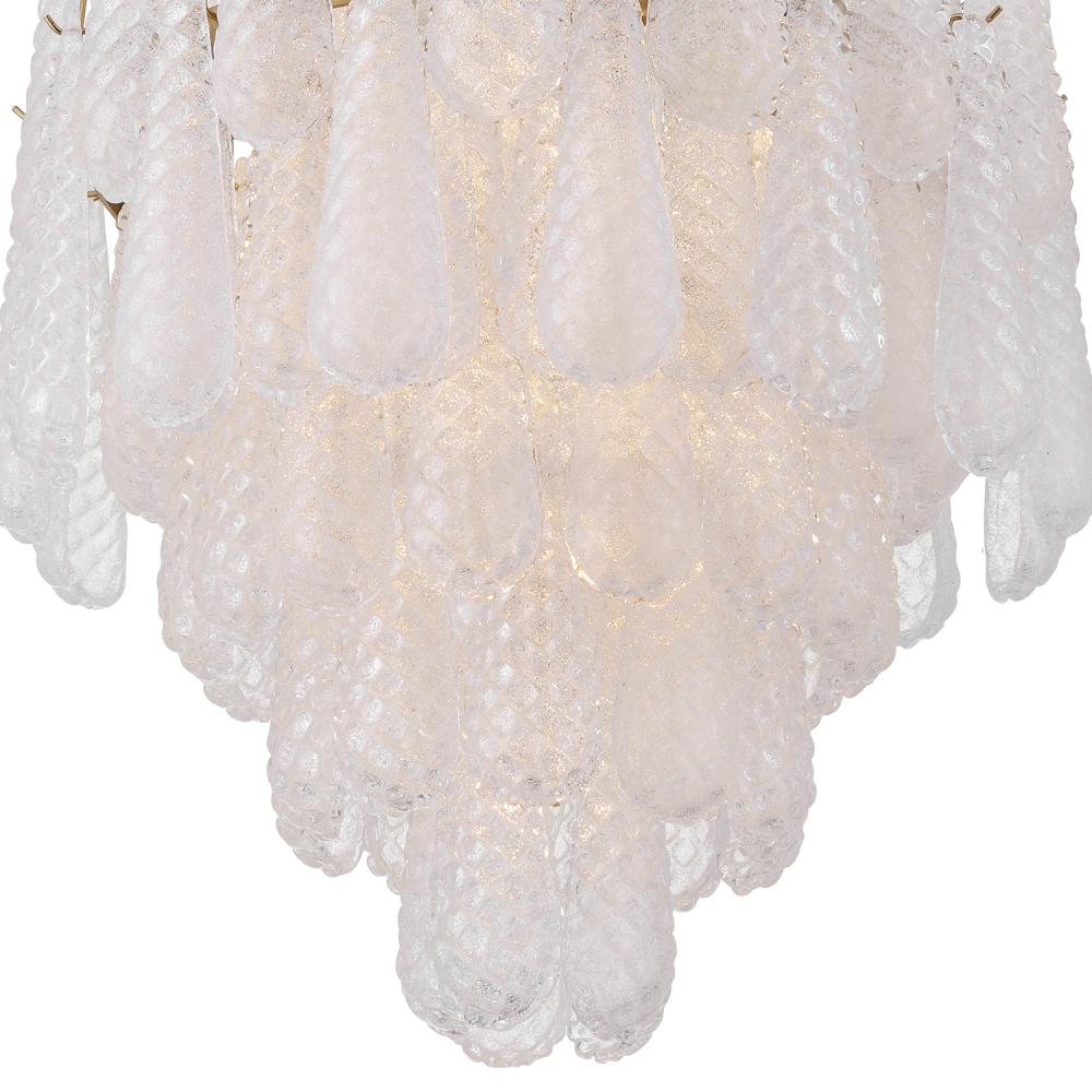 Inspired by vintage and mid-century design, the Ollie collection features hand-blown glass with intricate raised details. The beautiful hues of this collection shift subtly depending on whether the light is on or off, creating a dynamic and artistic effect. This unique piece blends mid-20th-century charm with a modern touch, making it a true statement fixture.
