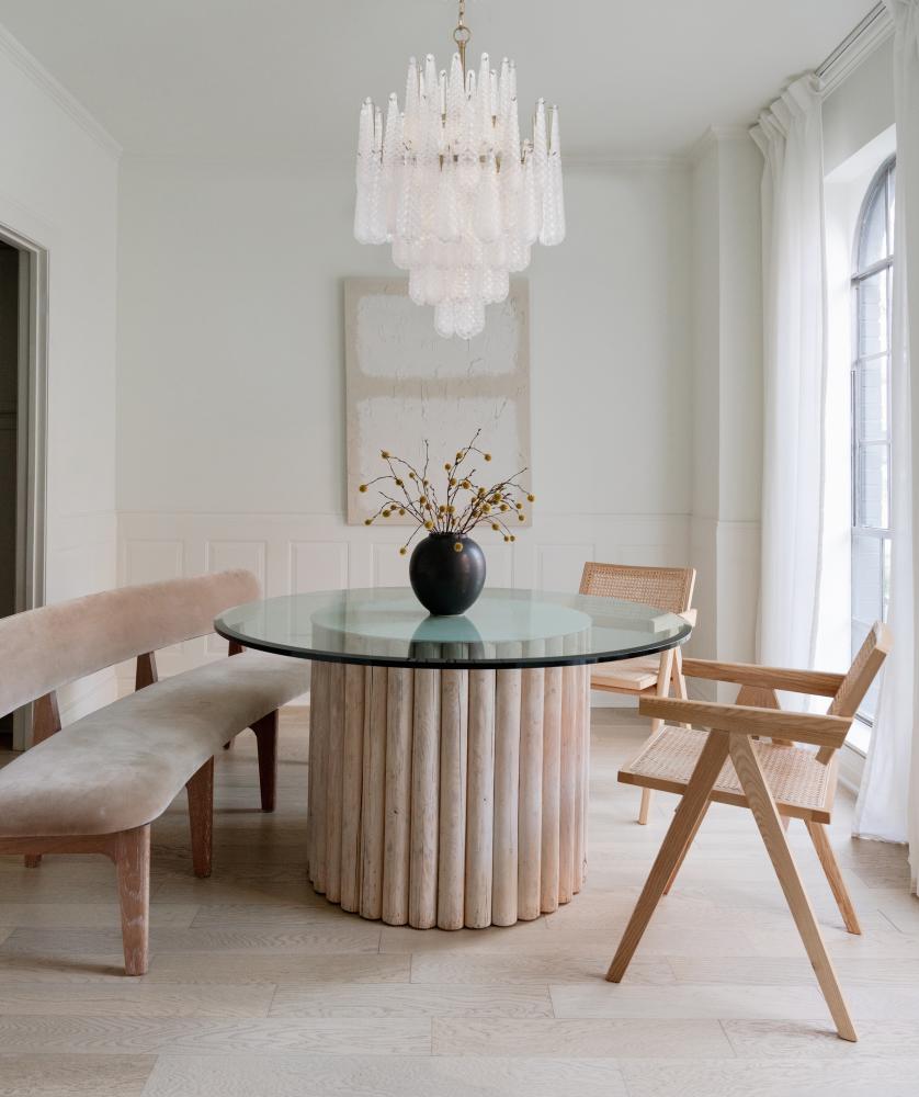 Characterized by clean lines, sculptural forms, and warm metallic or wood accents, often featuring bold shapes and playful pops of color for a retro yet timeless appeal.