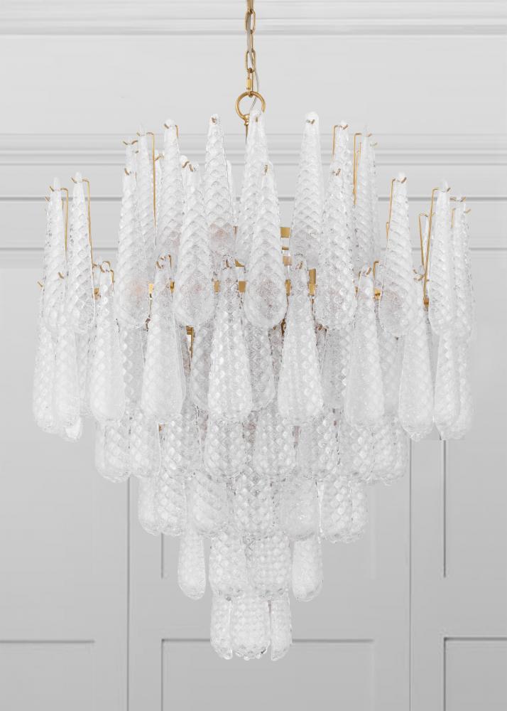 Inspired by vintage and mid-century design, the Ollie collection features hand-blown glass with intricate raised details. The beautiful hues of this collection shift subtly depending on whether the light is on or off, creating a dynamic and artistic effect. This unique piece blends mid-20th-century charm with a modern touch, making it a true statement fixture.