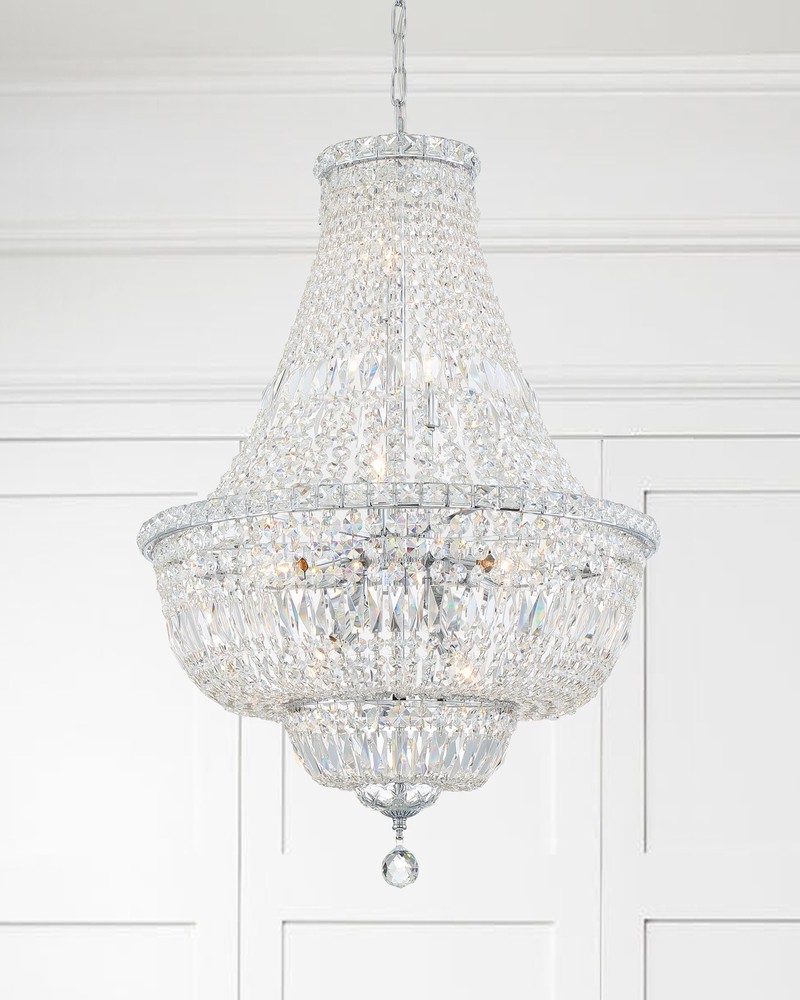 The crystals from the Roslyn collection are showcased in a way to give each fixture a frameless, seamless look.