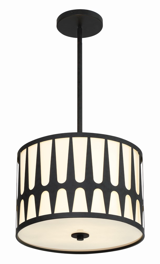Makes a statement with its graphic metal frame surrounding a white fabric drum shape.