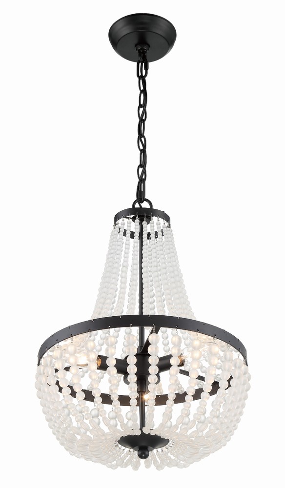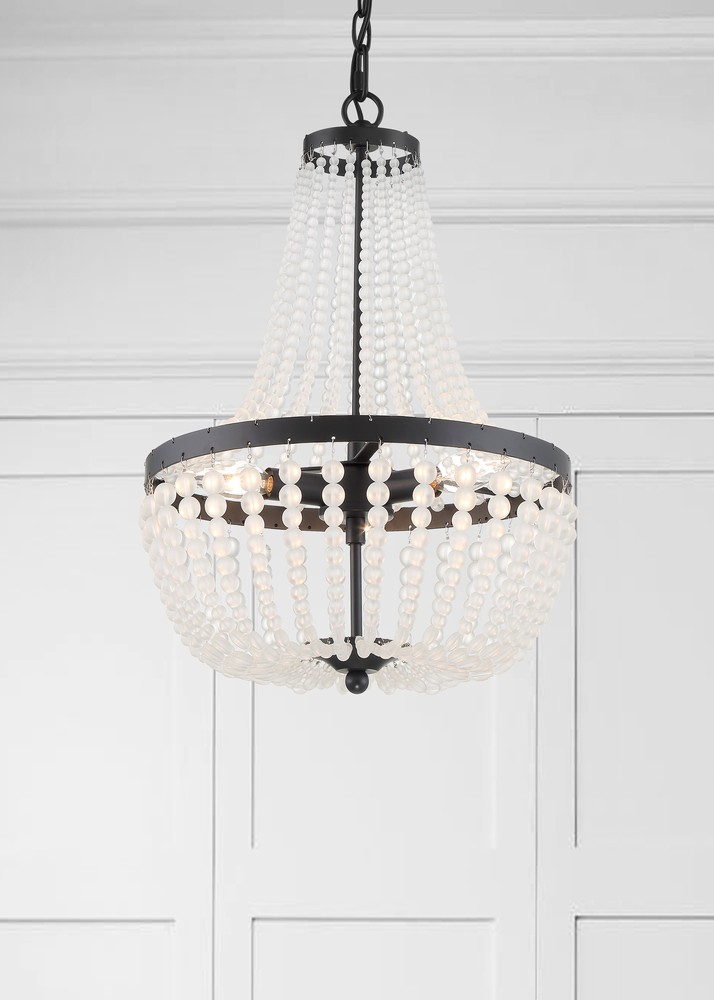 A traditional Empire shape meets modern elements in Crystorama's Rylee Collection. A circular-shaped hand-painted frame gives this fixture a vintage, distressed look, while the beads lend to a bohemian style flare. The Rylee creates a rich visual impact on any space in a perfect combination of texture and materials.