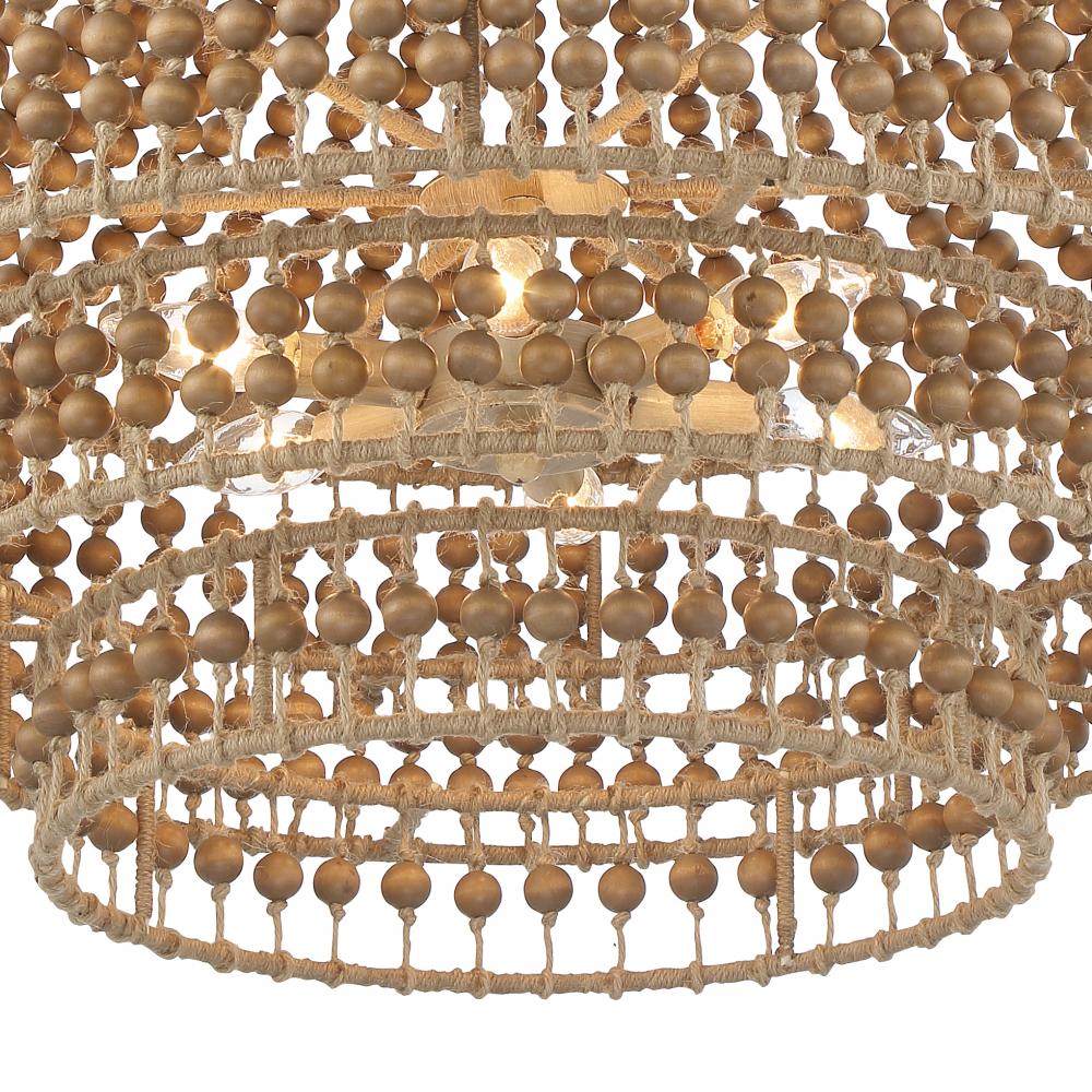 The Silas interlaces natural wood beads with jute rows, bringing an organic element to its environment. A series of beads are strung together, taking on a handmade aesthetic that creates an inviting and casual style to a room.