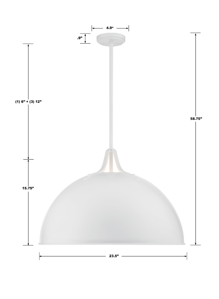 A large dome metal shade presents a clean and streamlined silhouette for our Soto collection. This sculptural one-light or three-light pendant is available in Matte Black with contrasting Antique Gold or Matte White. This industrial meets modern farmhouse design shines direct light downwards into your space, making it a perfect choice when hung over a breakfast nook or in pairs over a kitchen island.