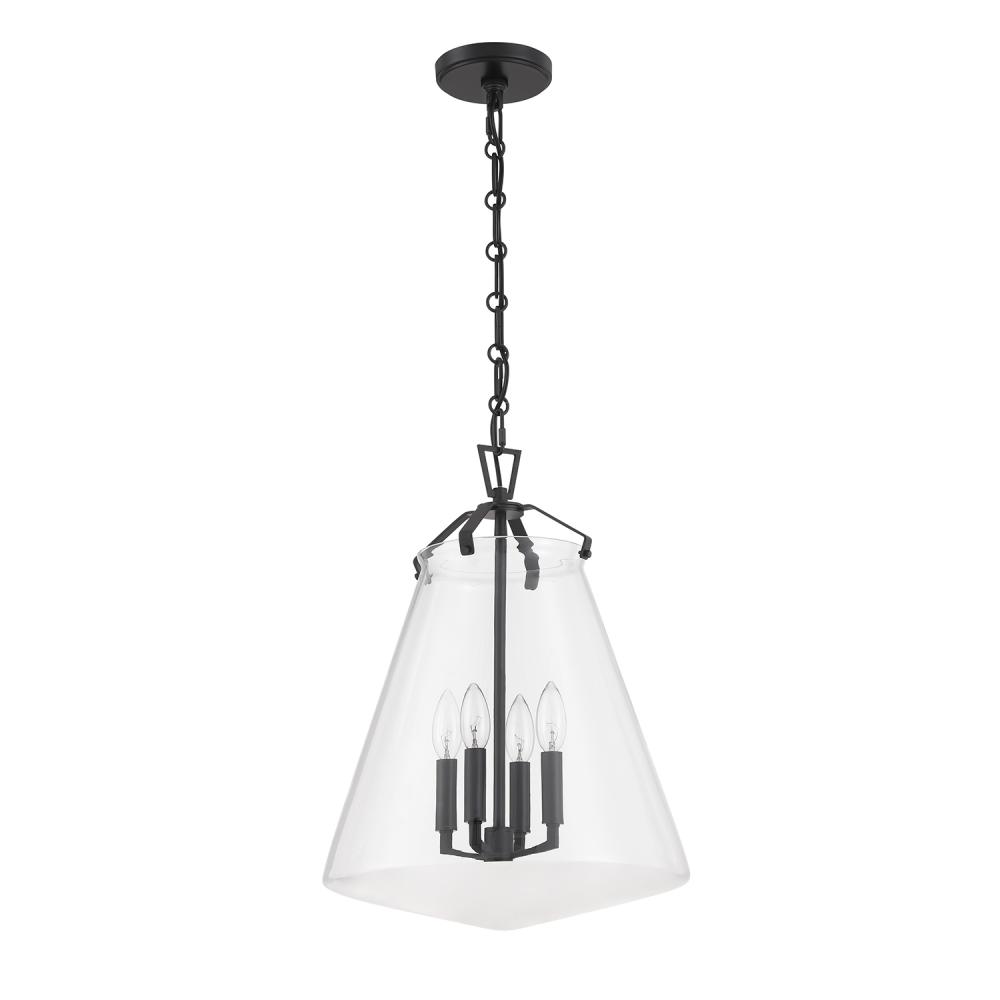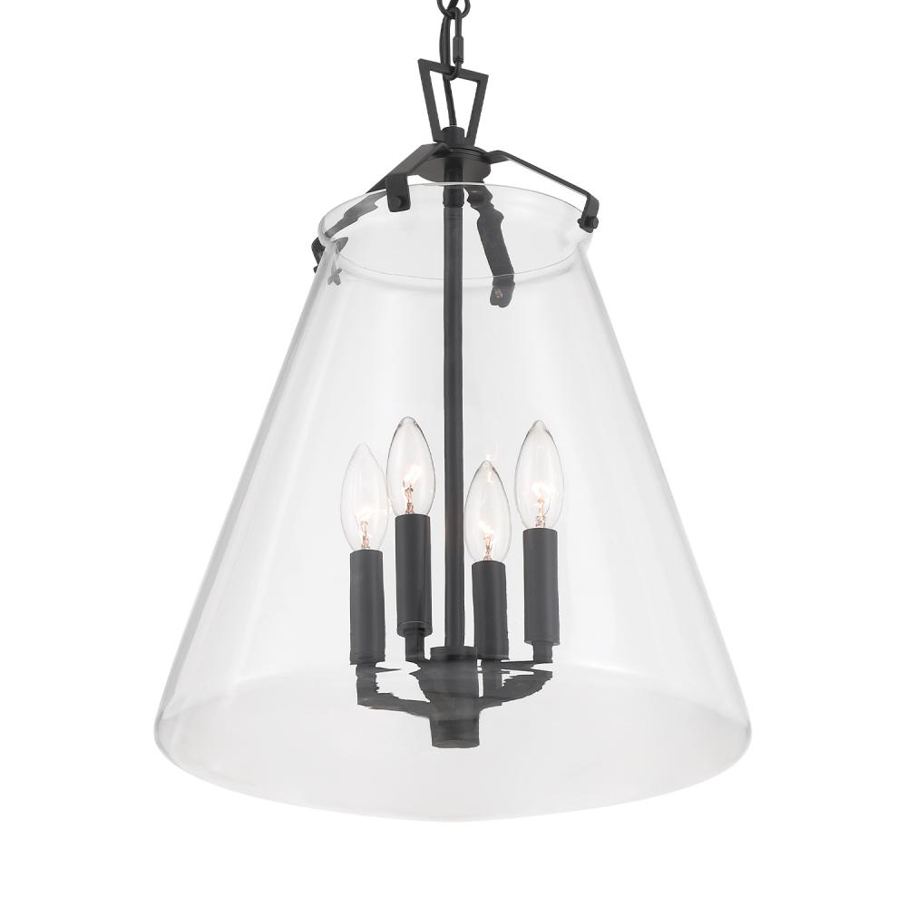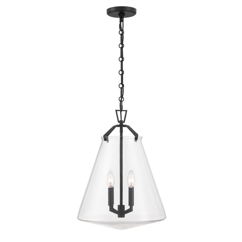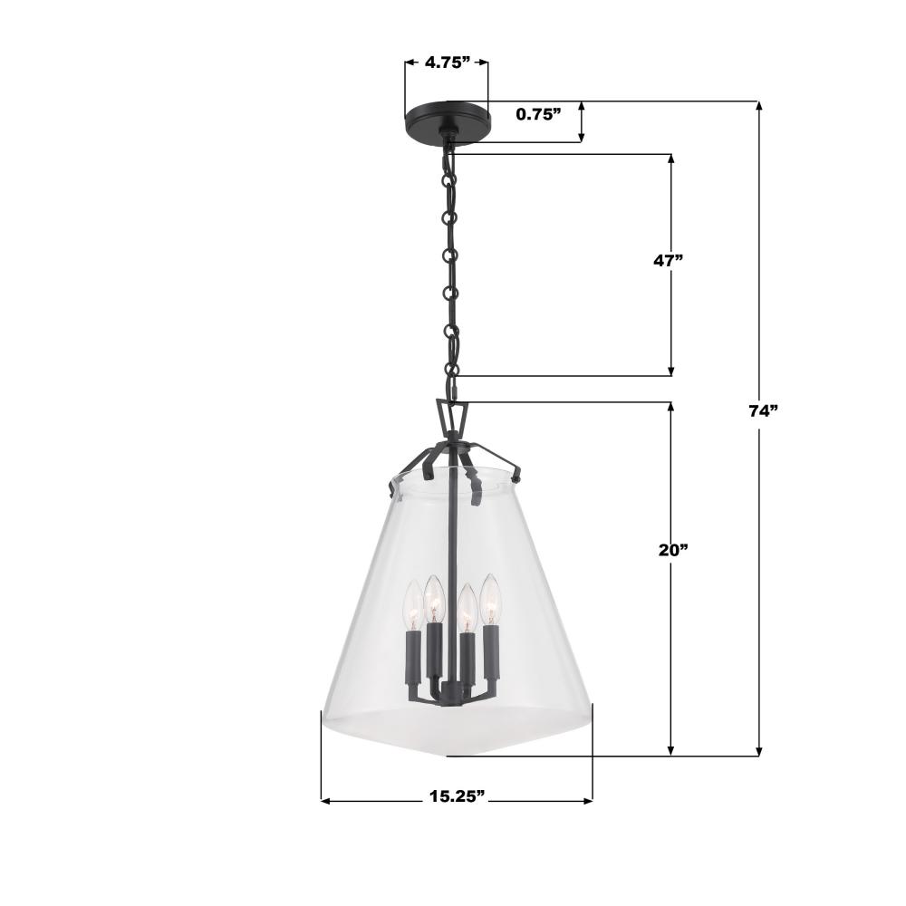 The Voss Collection is a sleek, enduring design with subtle angular details, offered in various finishes and sizes for your unique space. It’s clear glass cone-shaped pendant is closed on the bottom and fastened with metal on its open top. The patterned chain detail adds a touch of character to its streamlined design. The Voss Collection is not confined to a single style; it is a versatile design that suits a variety of spaces, from minimalist and modern to classic and eclectic.