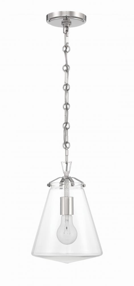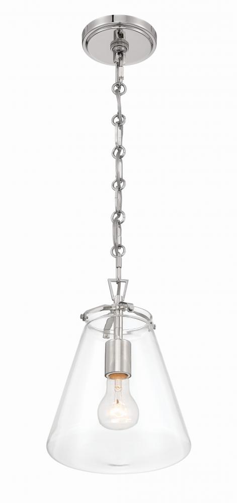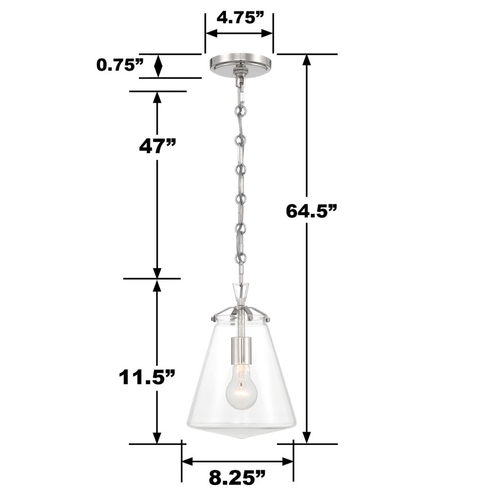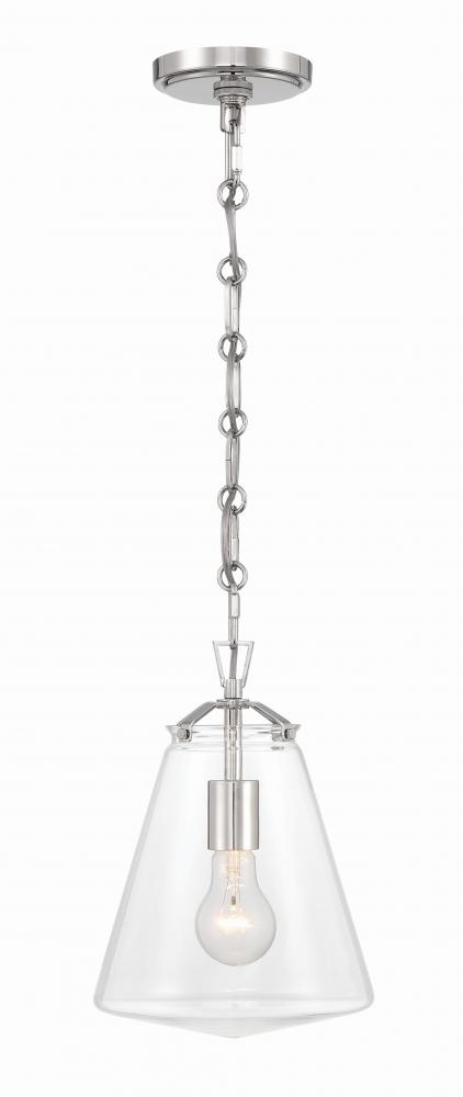 The Voss Collection is a sleek, enduring design with subtle angular details, offered in various finishes and sizes for your unique space. It’s clear glass cone-shaped pendant is closed on the bottom and fastened with metal on its open top. The patterned chain detail adds a touch of character to its streamlined design. The Voss Collection is not confined to a single style; it is a versatile design that suits a variety of spaces, from minimalist and modern to classic and eclectic.