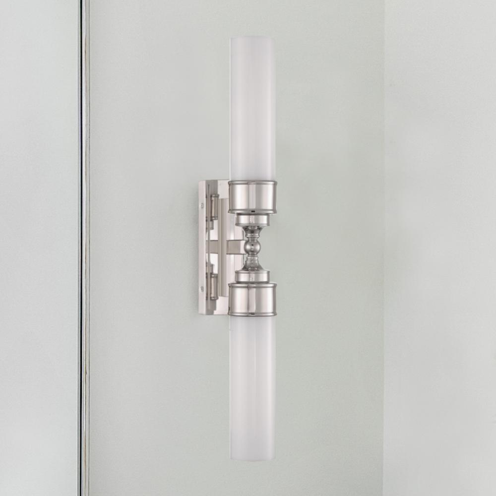 The Wilcox Collection offers a single or double light option, perfect for placing over or on the sides of a vanity, giving a bathroom an elegant an sophisticated touch.