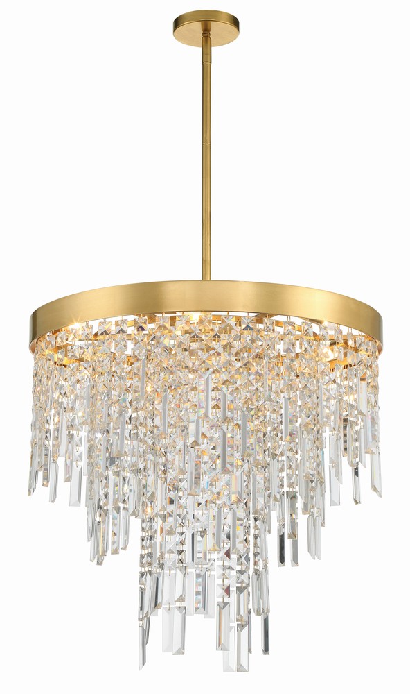 The thick simple metal frame of the Winfield is dramatically dressed with a cascade of crystals.