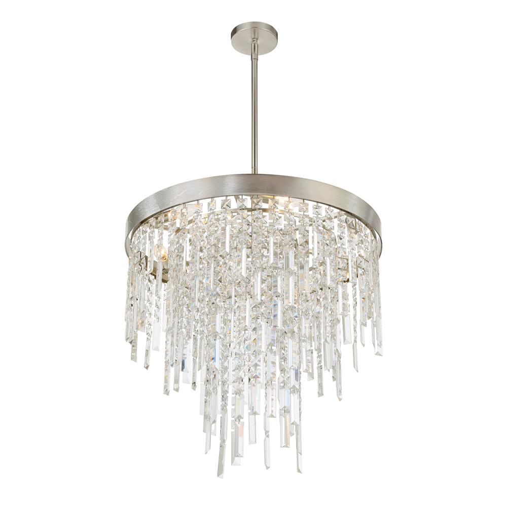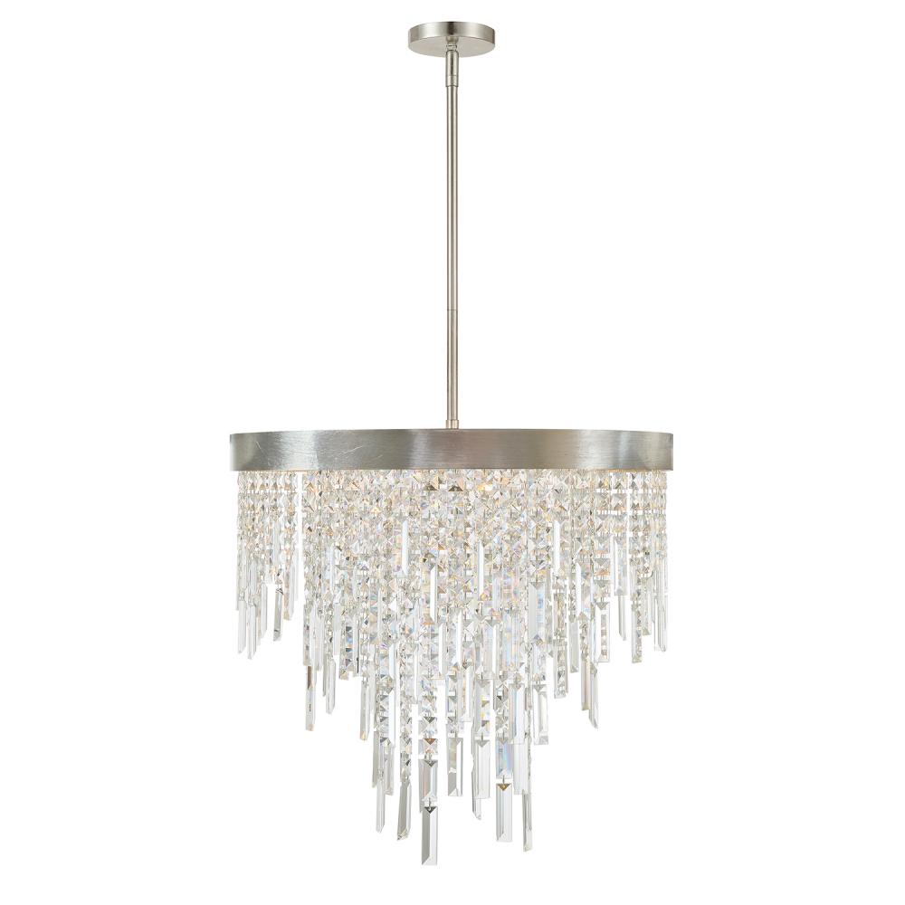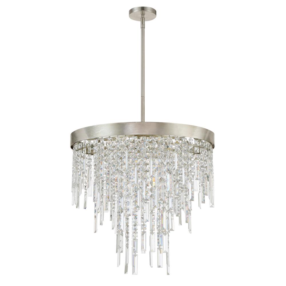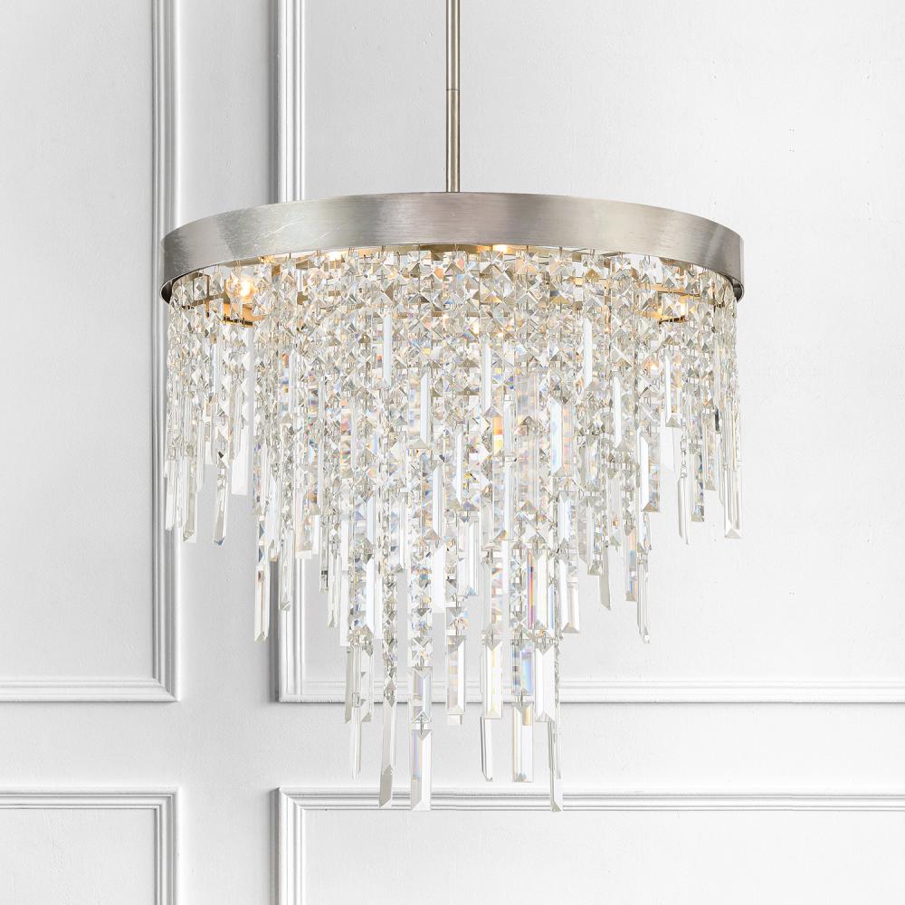 The Winfield collection's artful elegance and inspiring beauty make a sophisticated statement to an interior. This exquisite collection showcases square and rectangular multi-faceted cut crystal strands gracefully hanging from its metal frame. These mesmerizing crystals sparkle and reflect light, creating a dazzling display that captures attention and adds a touch of opulence to any space. Whether illuminated or not, its eye-catching presence becomes a focal point in any room.
