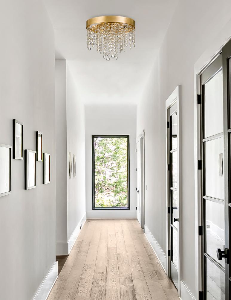 Layers of multi-sized faceted cut crystal strands are arranged on a simple, Black Forged or Antique Gold frame creates optimal sparkle. A perfect complement to any space. The Winham fixture is a sparkling masterpiece when placed as a focal point in a bedroom, dining room or living room.