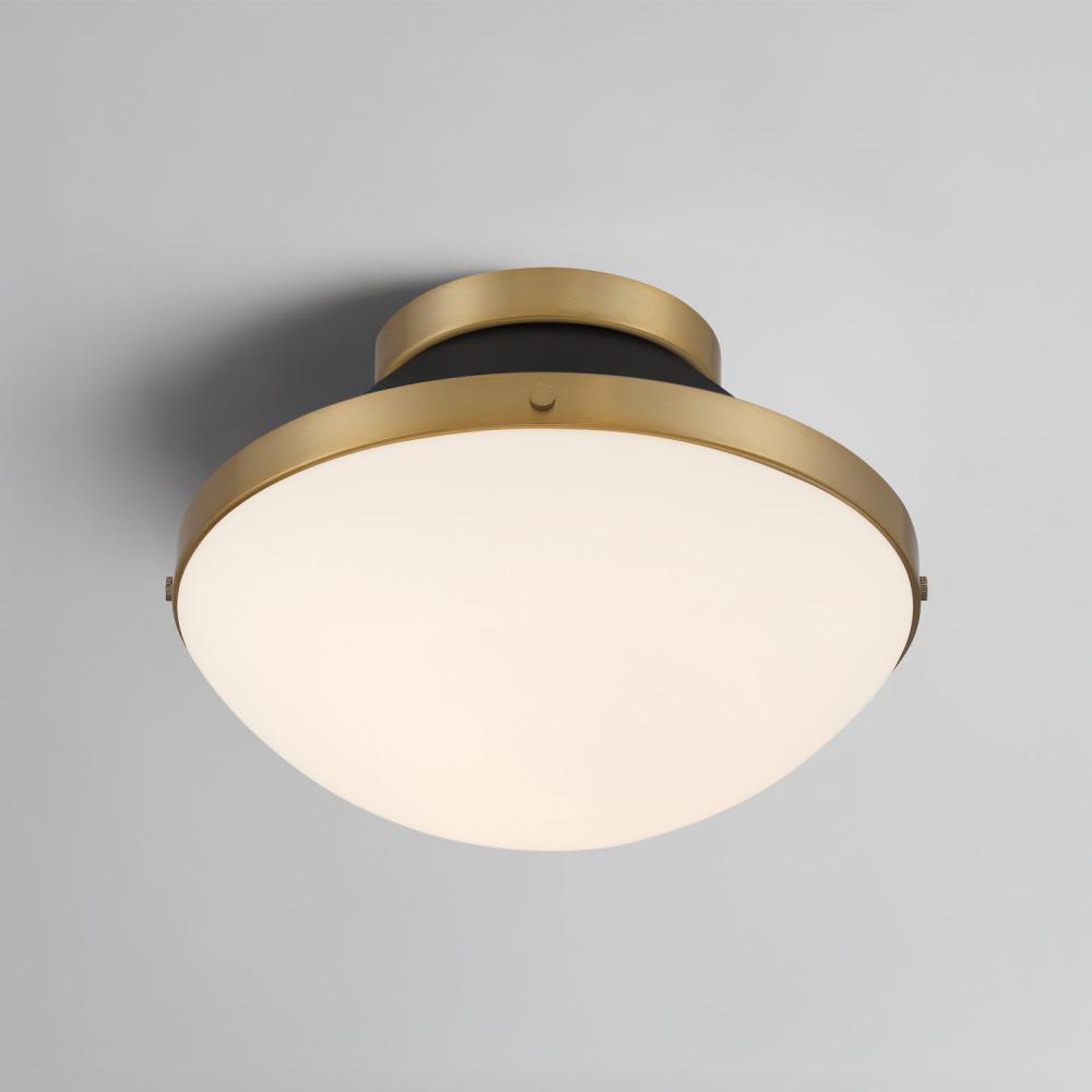 The Xander collection features a playful, mid-century-inspired design with clean lines and fun pops of color. It has white opal glass and gold accents, creating a two-toned finish that adds a touch of whimsy. This versatile fixture can be used in various settings, making it a stylish and functional addition to any room.
