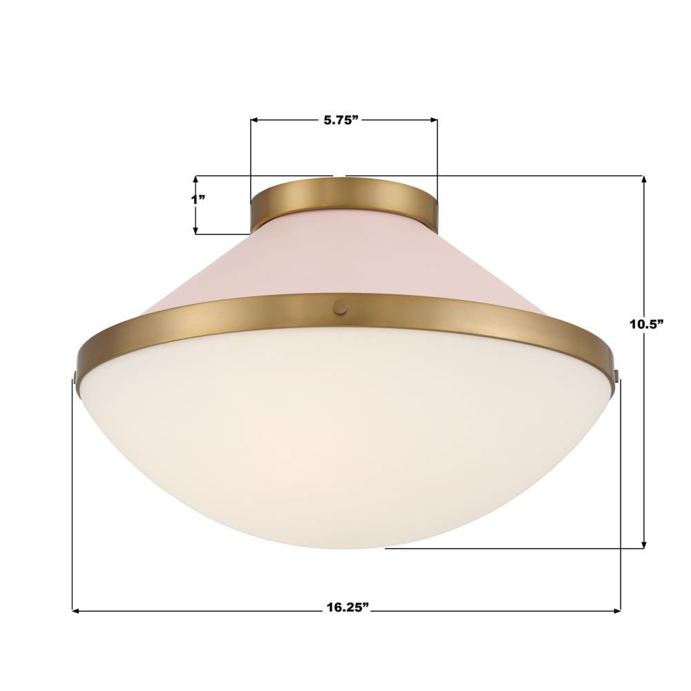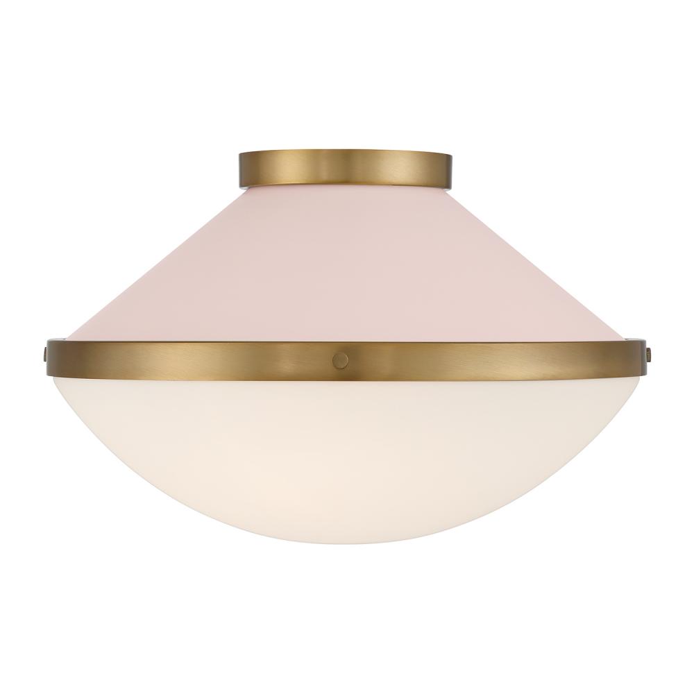 The Xander collection features a playful, mid-century-inspired design with clean lines and fun pops of color. It has white opal glass and gold accents, creating a two-toned finish that adds a touch of whimsy. This versatile fixture can be used in various settings, making it a stylish and functional addition to any room.