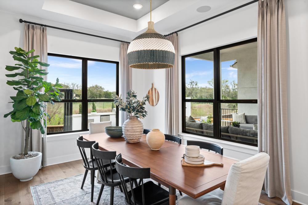 Soft Gold metal tones showcase a light and airy feel that work well with transitional settings.