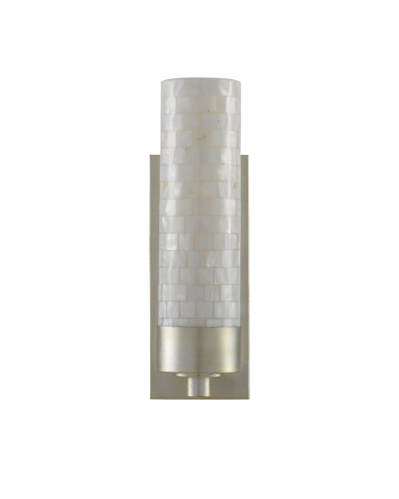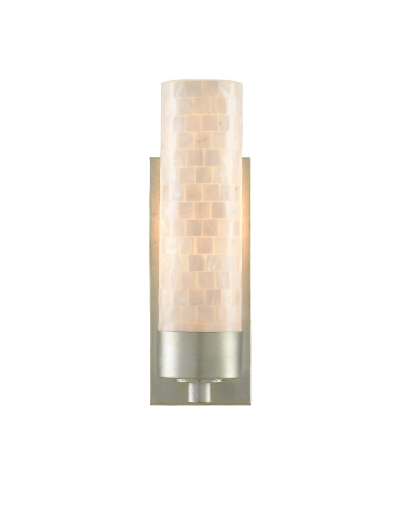 The Abadan Wall Sconce has a stylish thin canister shade made of luminous mother of pearl. When the lights are switched on, the surface of the shell ignites to make the polished nickel metal on this silver wall sconce just as radiant. It's a terrific fit for a hallway or a bath.