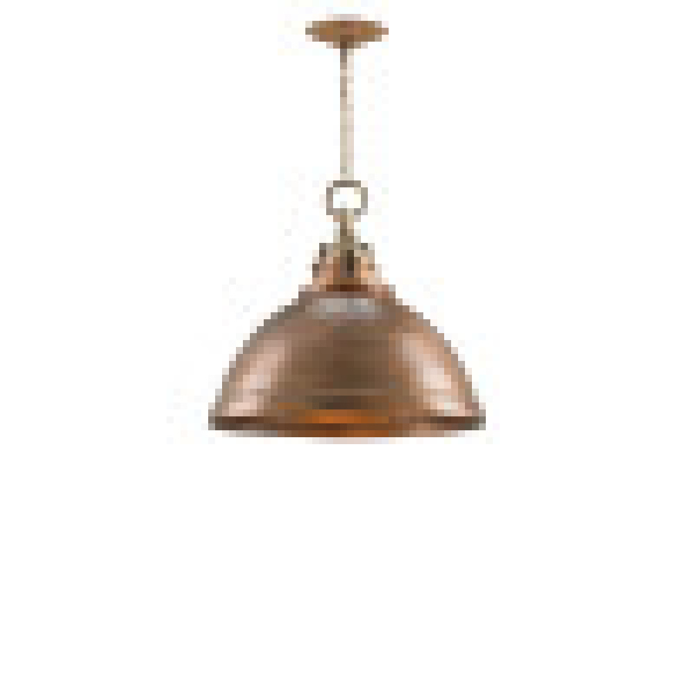 The rich finish on the aluminum body of the Admiral Pendant is a hand-finished copper. It complements the antique brass hardware to bring this versatile dome-shaped pendant a feeling of true warmth. The one-light copper pendant is one of our rough luxe offerings. Adjustable from 25" to 92" with use of included chain/rod kit/cable. If your space calls for a longer drop, additional chain/rods/cable is available for purchase.