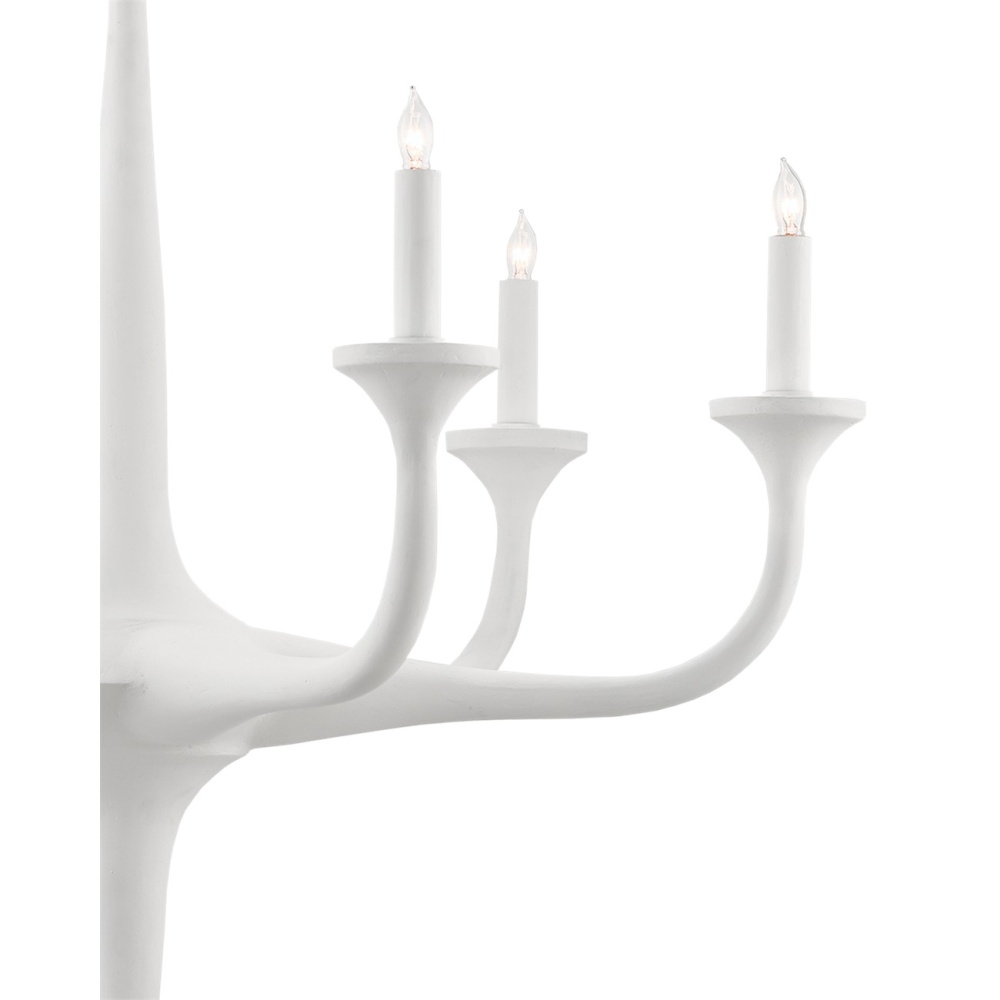 The Albion Chandelier seems far too ethereal to be made of wrought iron, but that is the material this white chandelier is fashioned from. The Albion is so smoothly covered in a gesso white finish that it reads like it has been sculpted from a pliable material. Adjustable from 39" to 108" with use of included chain/rod kit/cable. If your space calls for a longer drop, additional chain/rods/cable is available for purchase.