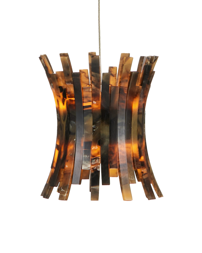 The shades of the Alsop Round 7-Light Multi-Drop Pendant were inspired by tortoise shell bracelets that were popular during the era when Hollywood glamour was at its height. Made of composite with faux-horn surfaces, the shades on the brown pendant will be warm elements in a space. A refined aspect of the design is how the ribs arc outward and how they are staggered for greater texture than their surfaces bring. The canopy of this piece is luminous in a painted silver finish. This fixture is among Currey & Company's introduction of cluster lights, which includes multiple configurations.